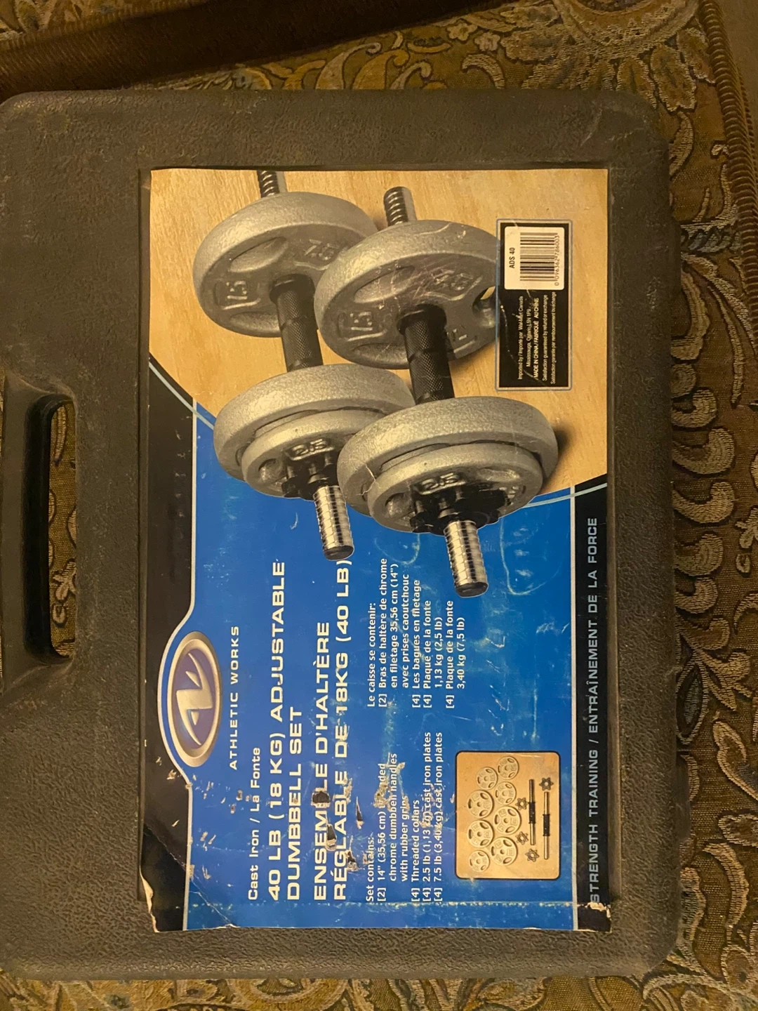 Selling an Athletic Works 40 LB (18 KG) Adjustable Dumbbell Set. It includes:
