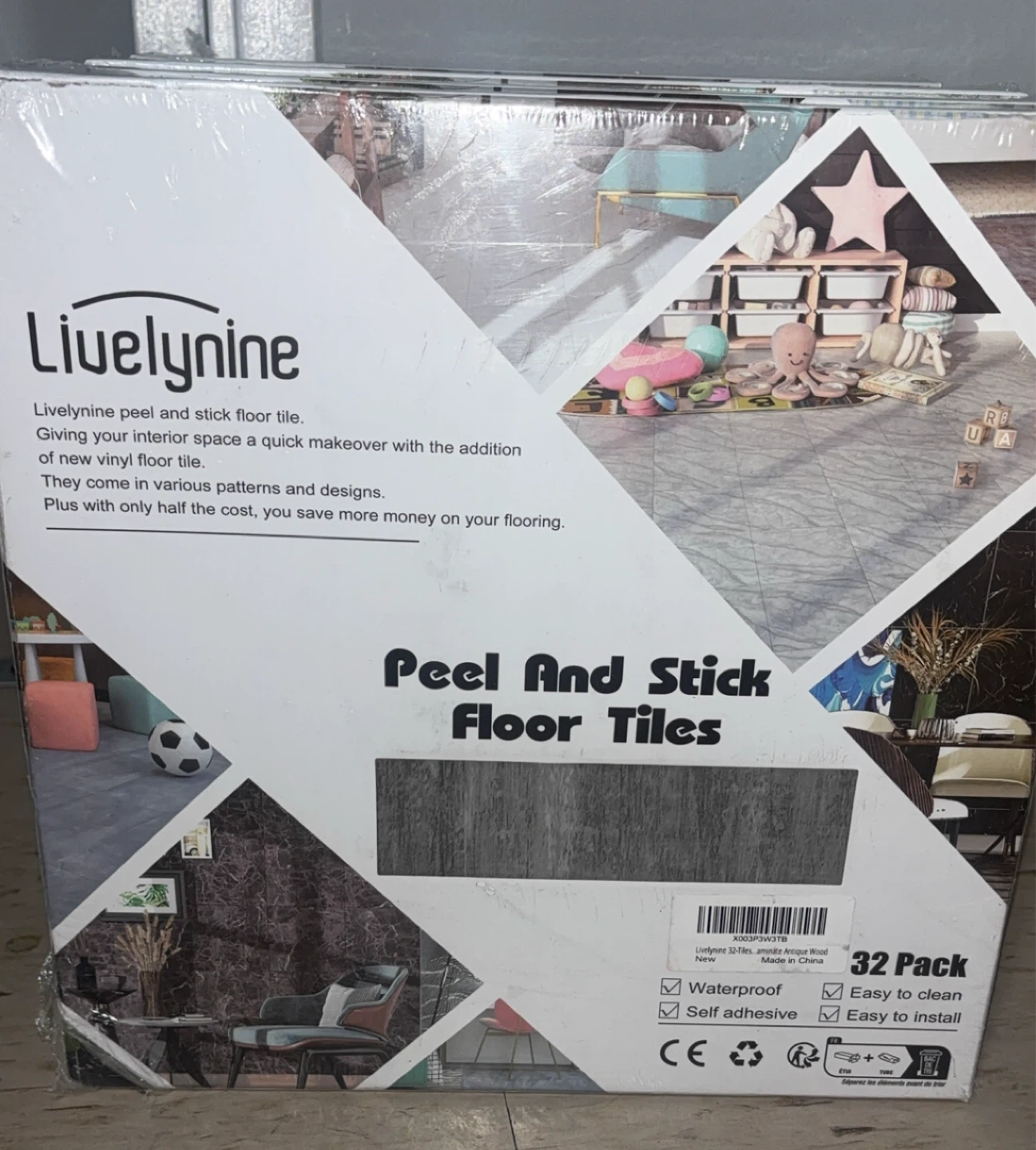 I have brand new 4 boxes Livelynine peel and stick floor tiles for sale! These are waterproof, self-adhesive, and easy to install. Each pack contains 32 tiles, perfect for a quick makeover.