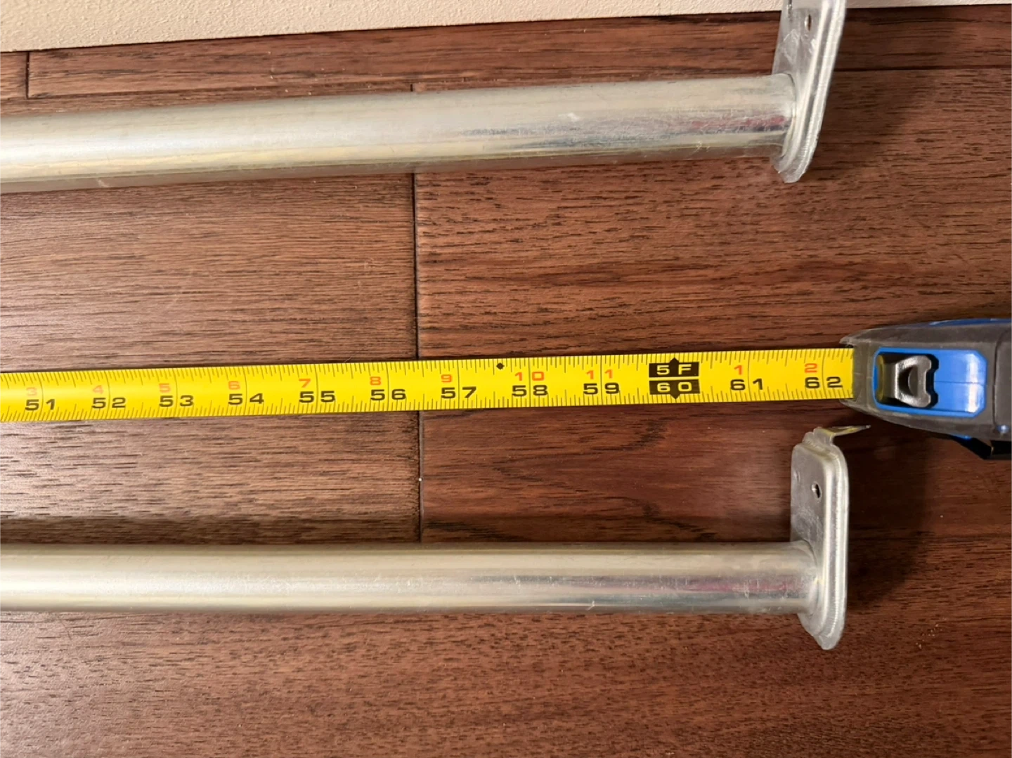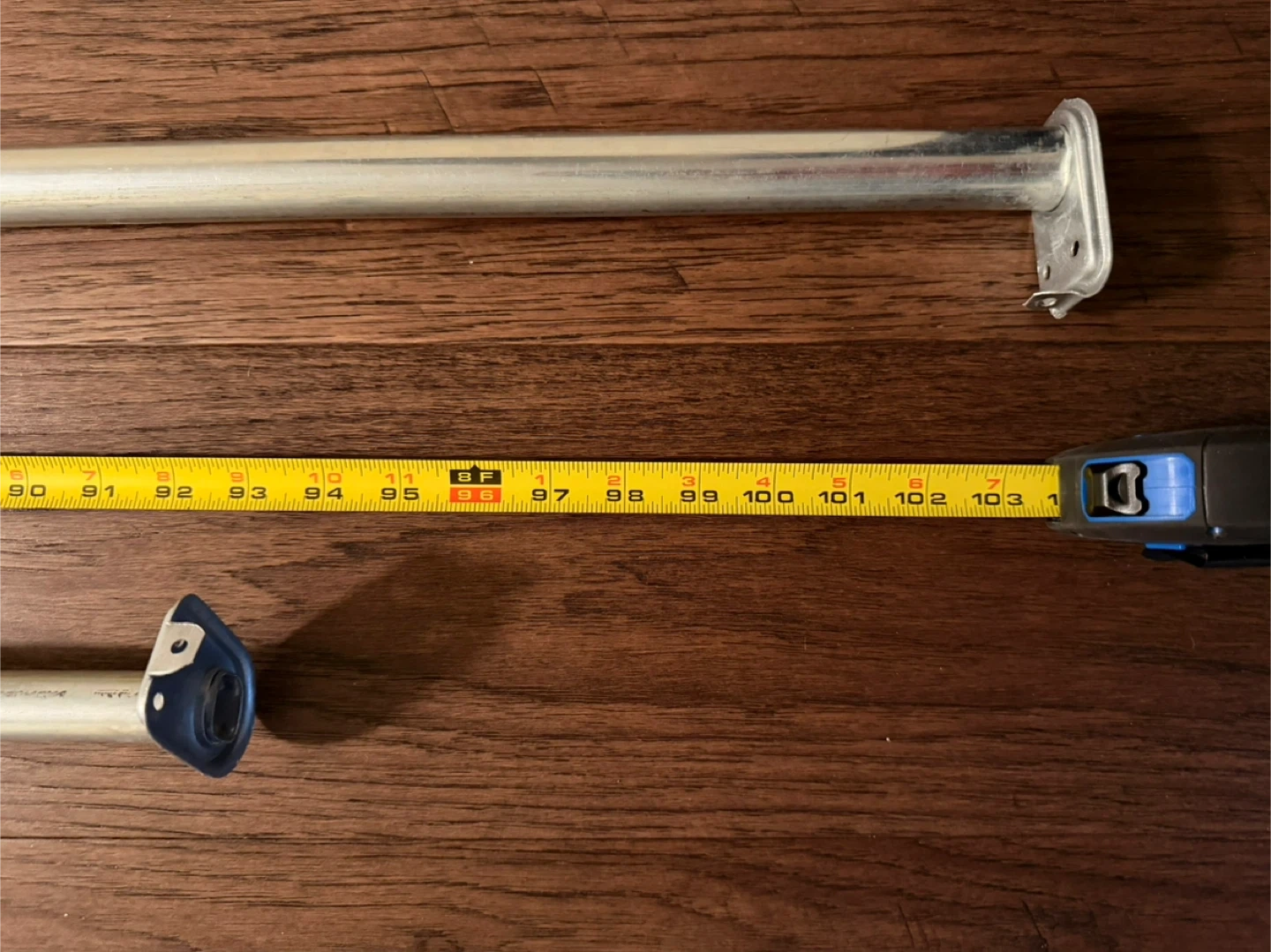 The longer closet rod is expandable from about 62 to 103 inches long. The shorter one is also expandable from 62 to 93 inches long.