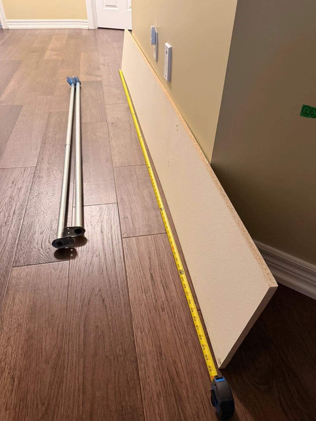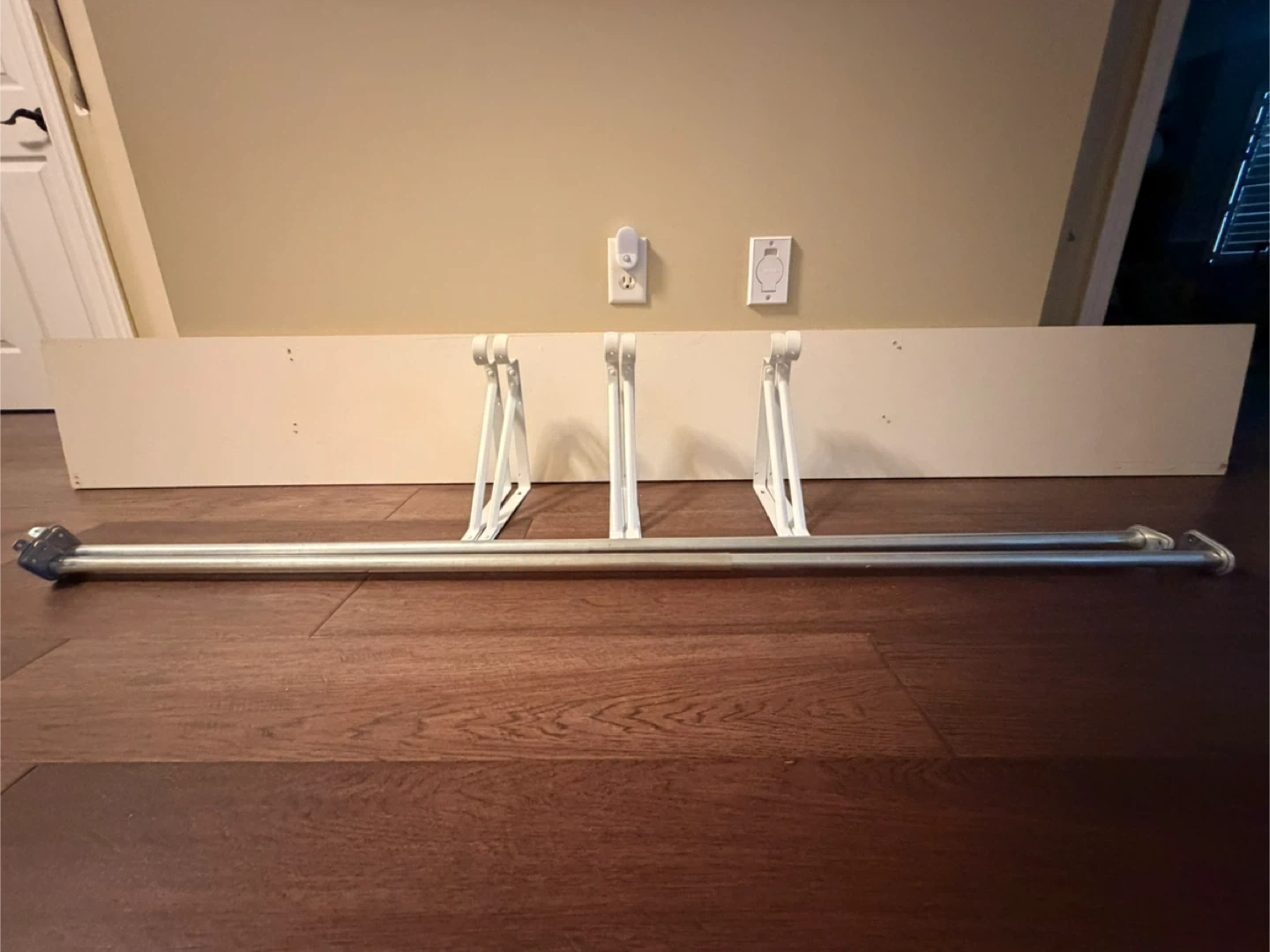 Selling a closet system that includes 2 closet rods, 1 shelf, and 6 brackets. Perfect for organizing your closet space!