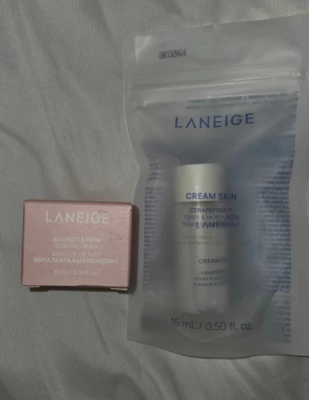Selling Laneige Bouncy & Firm Sleeping Mask 10 mL and a Laneige Cream Skin Cerapeptide Toner & Moisturizer 15 mL