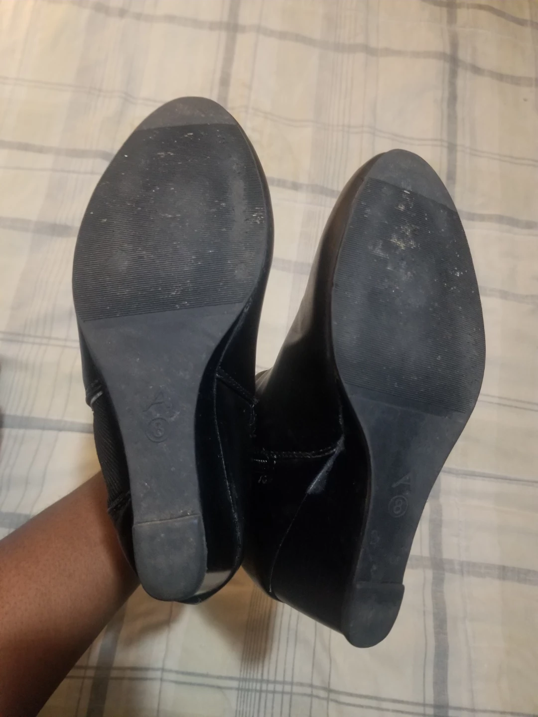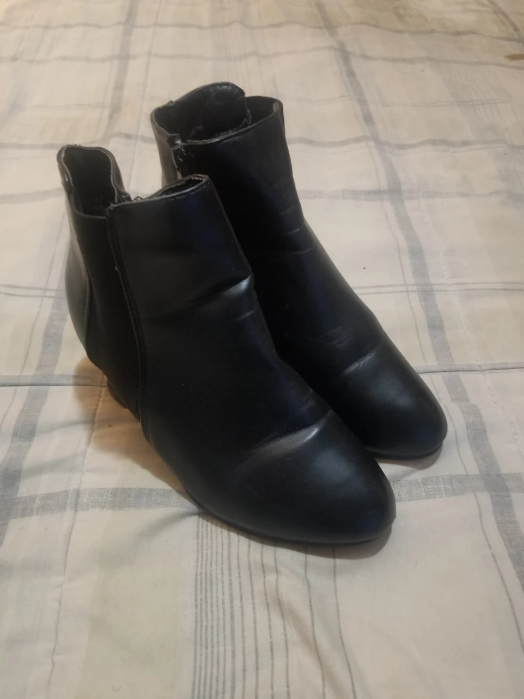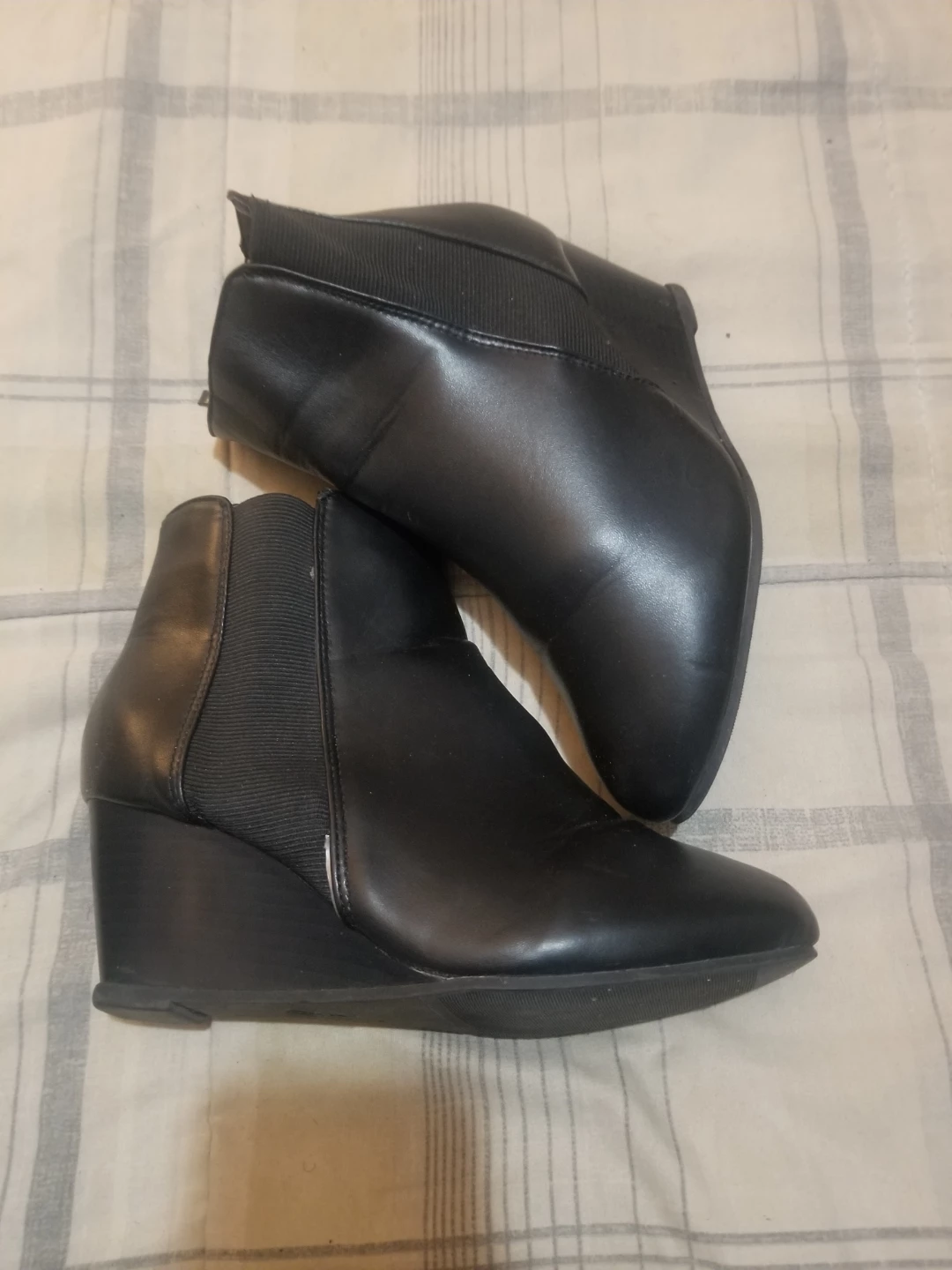 Hey Fellow Karroters π₯ I'm Selling a pair of black wedge ankle boots in size 8. They have a bit of a wedge heel and some elastic detailing on the sides. They've been worn, but still have lots of life left! Looking for New Owner Asking Only $10