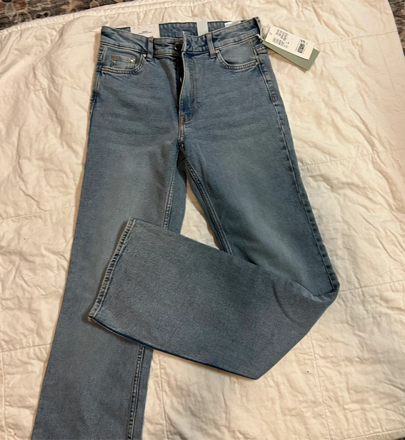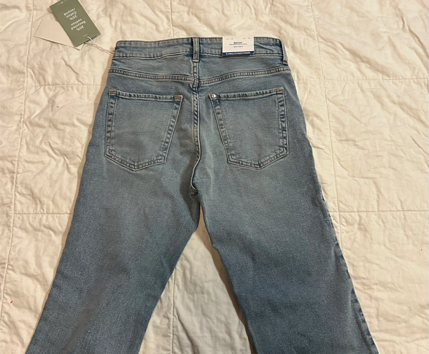 These are a new pair of H&M bootcut jeans with a high waist. They are a size US 2 and still have the tags attached! Originally bought for $39.99 CAD