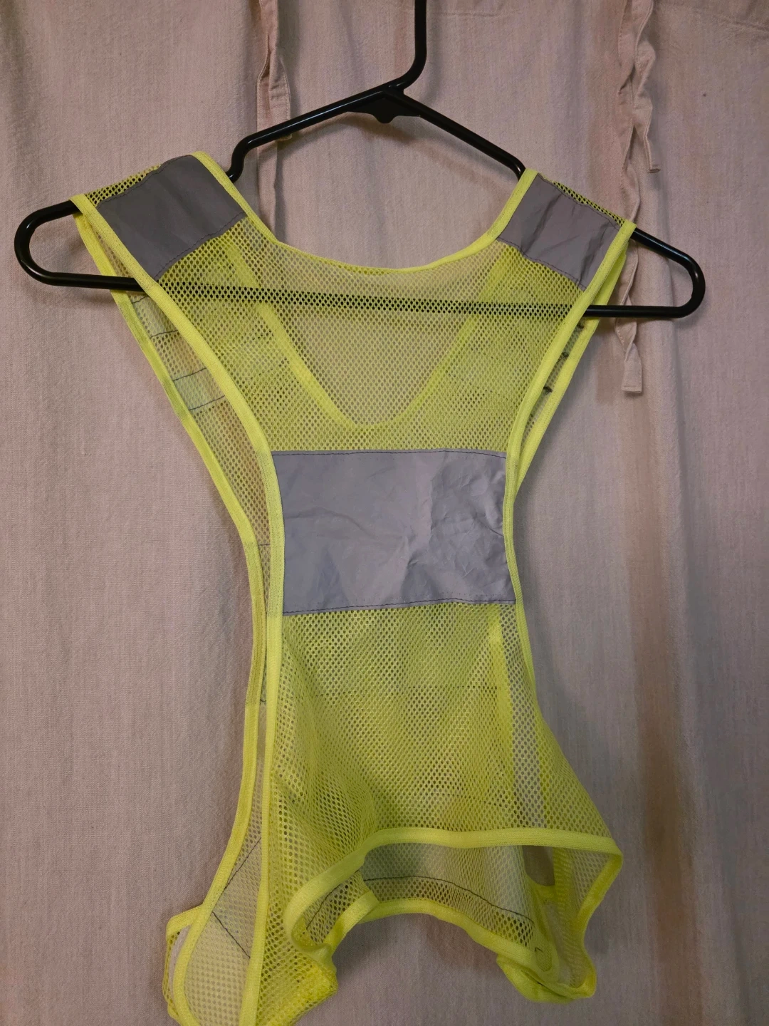 Selling a SPIbelt reflective running vest in yellow. This vest is perfect for staying visible during your runs or walks, especially in low-light conditions. It's lightweight and comfortable, making it easy to wear during any activity. Stay safe and seen!