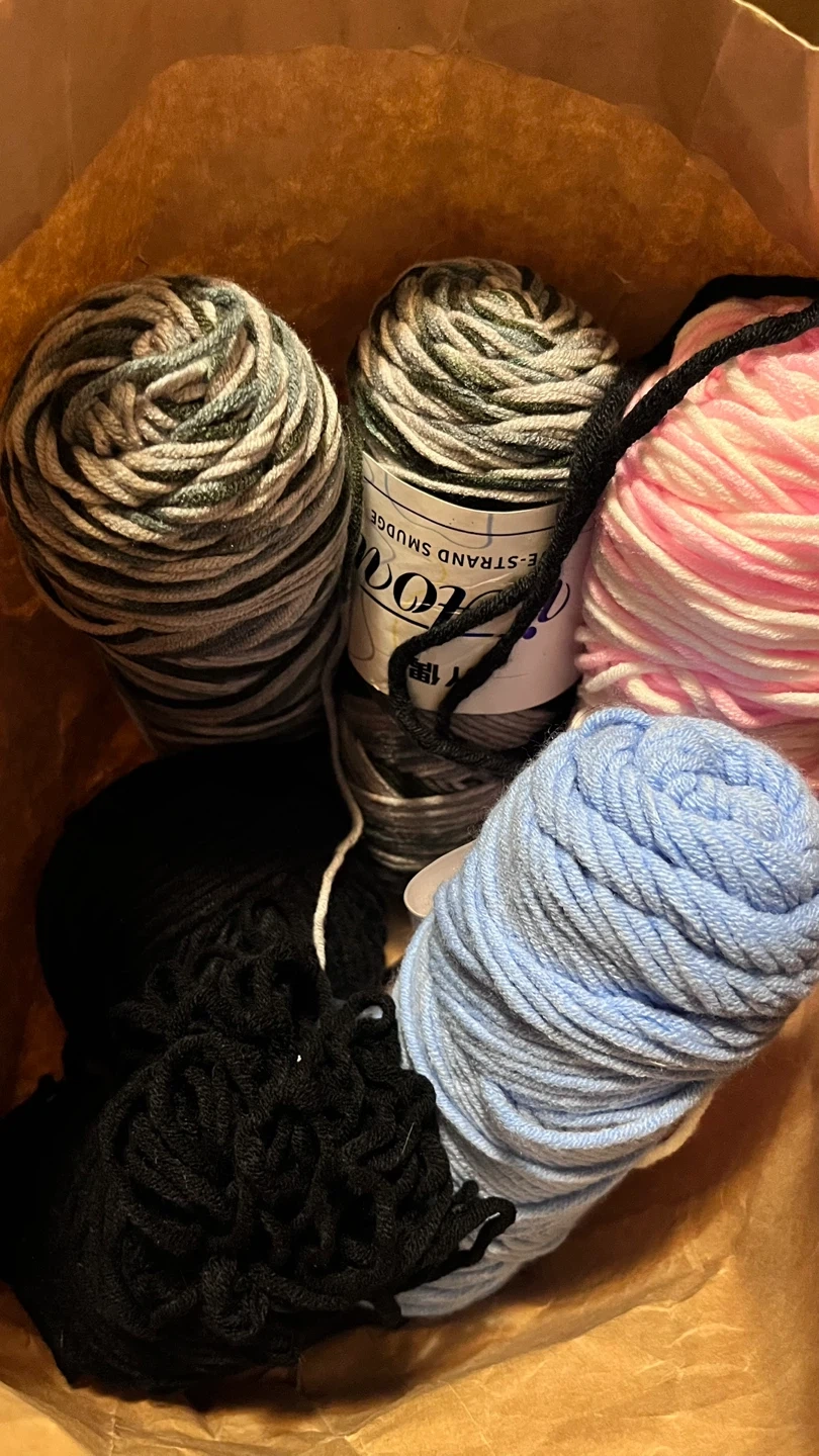 Selling a lot of Loops & Threads Impeccable E-Strand Smudge yarn in various colours including grey, black, pink, and blue! Perfect for your next knitting or crochet project