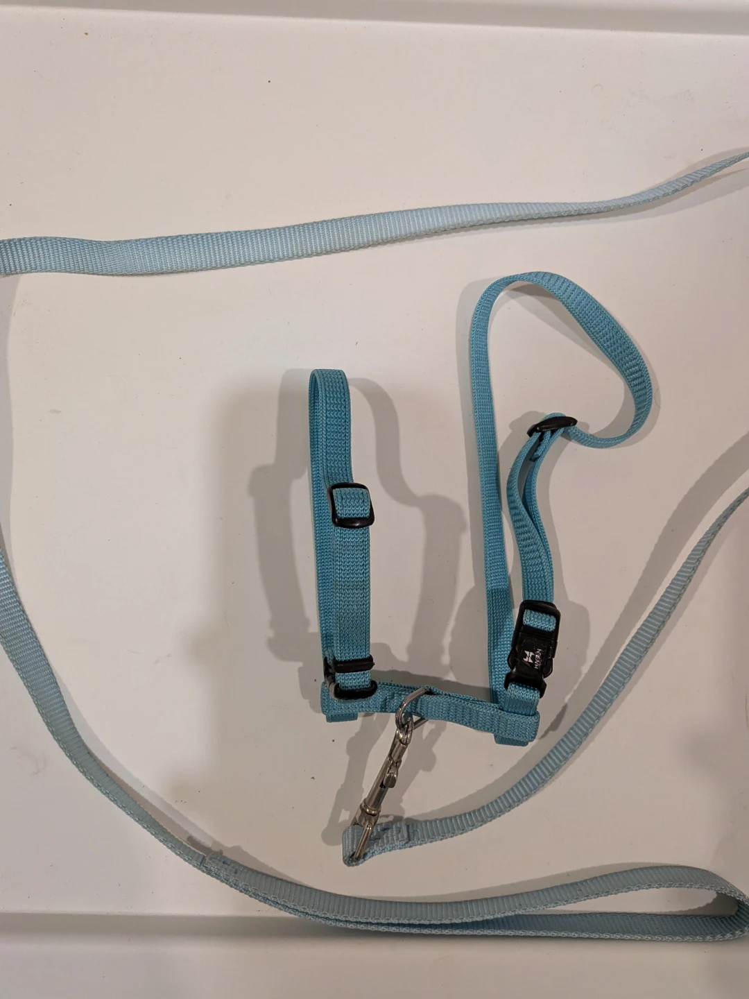 Selling a light blue harness and lead set for your furry friend! It looks like it's in great shape and ready for walks around the neighbourhood. The harness features adjustable straps and a secure clip, ensuring a comfortable and safe fit.