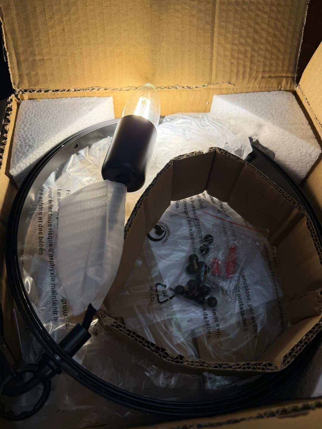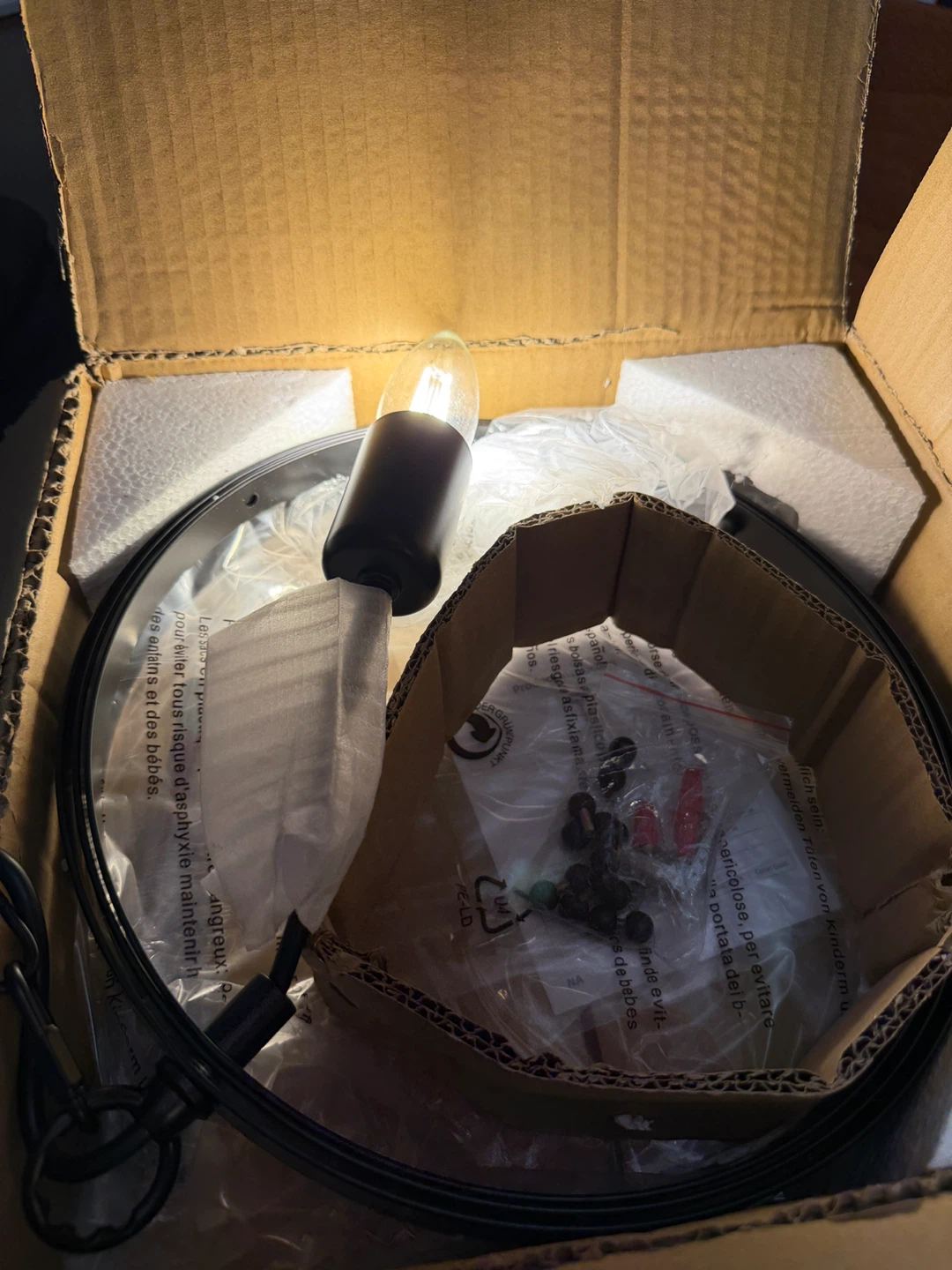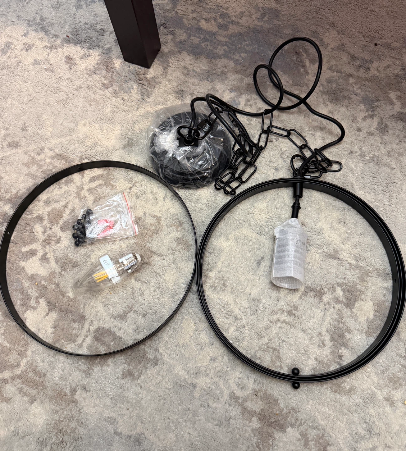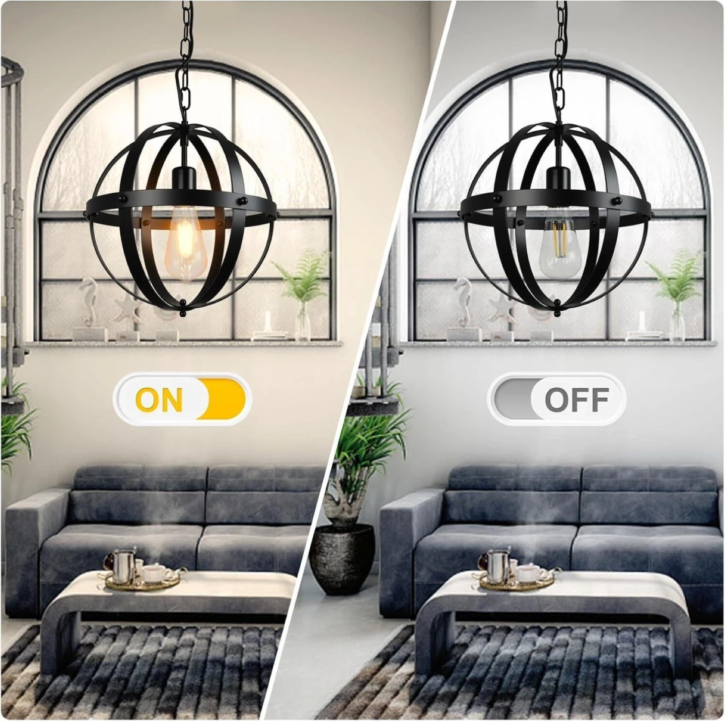 This is a brand new globe pendant lighting fixture. It has a black finish and comes with the box.