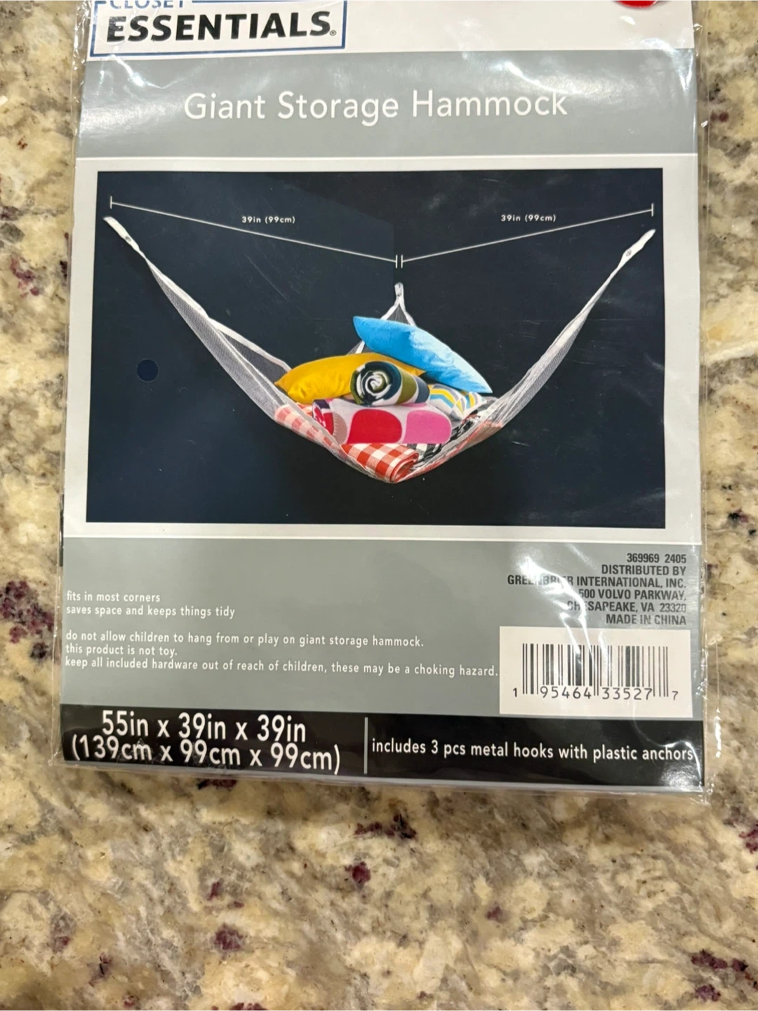 I'm selling a brand new Closet Essentials Giant Storage Hammock!