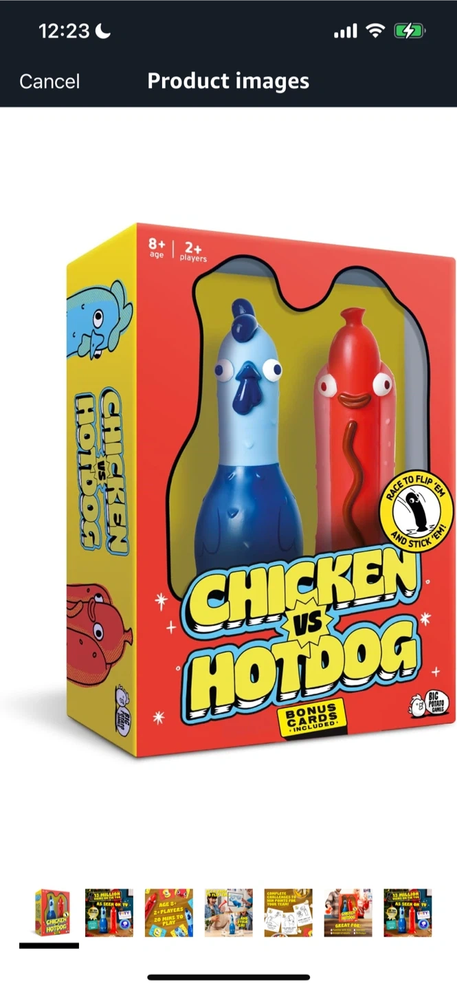 Selling the Chicken vs Hotdog family action party game! It is great for families with kids, groups of adults, birthdays, and hen-dos. Includes bonus cards! Recommended for ages 8+ and 2+ players!