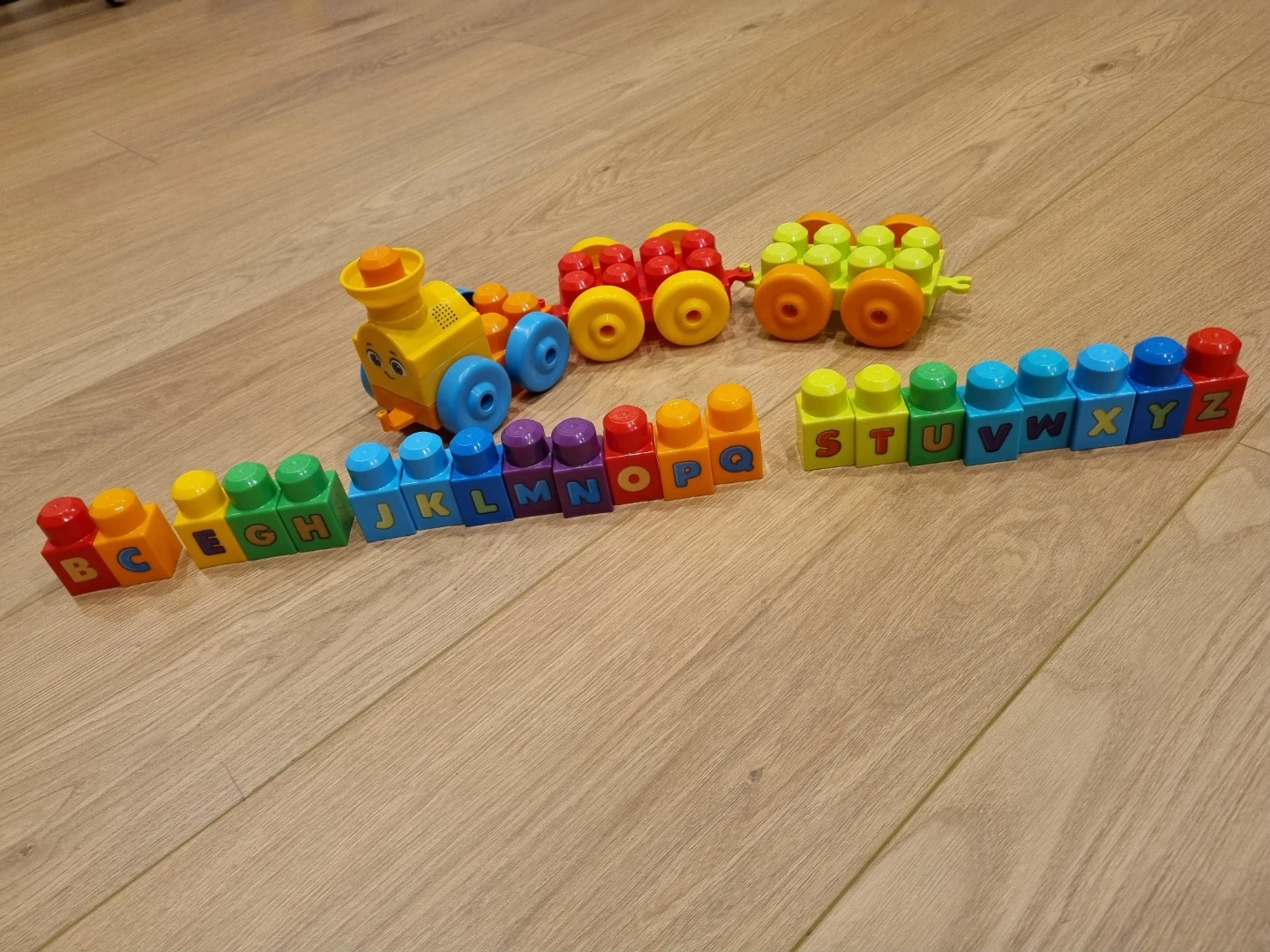 This is a cute Mega Bloks ABC Learning Train! Perfect for toddlers learning their alphabet and developing fine motor skills. The set includes a buildable train and colourful blocks with letters A through Z. Great for hours of educational fun!