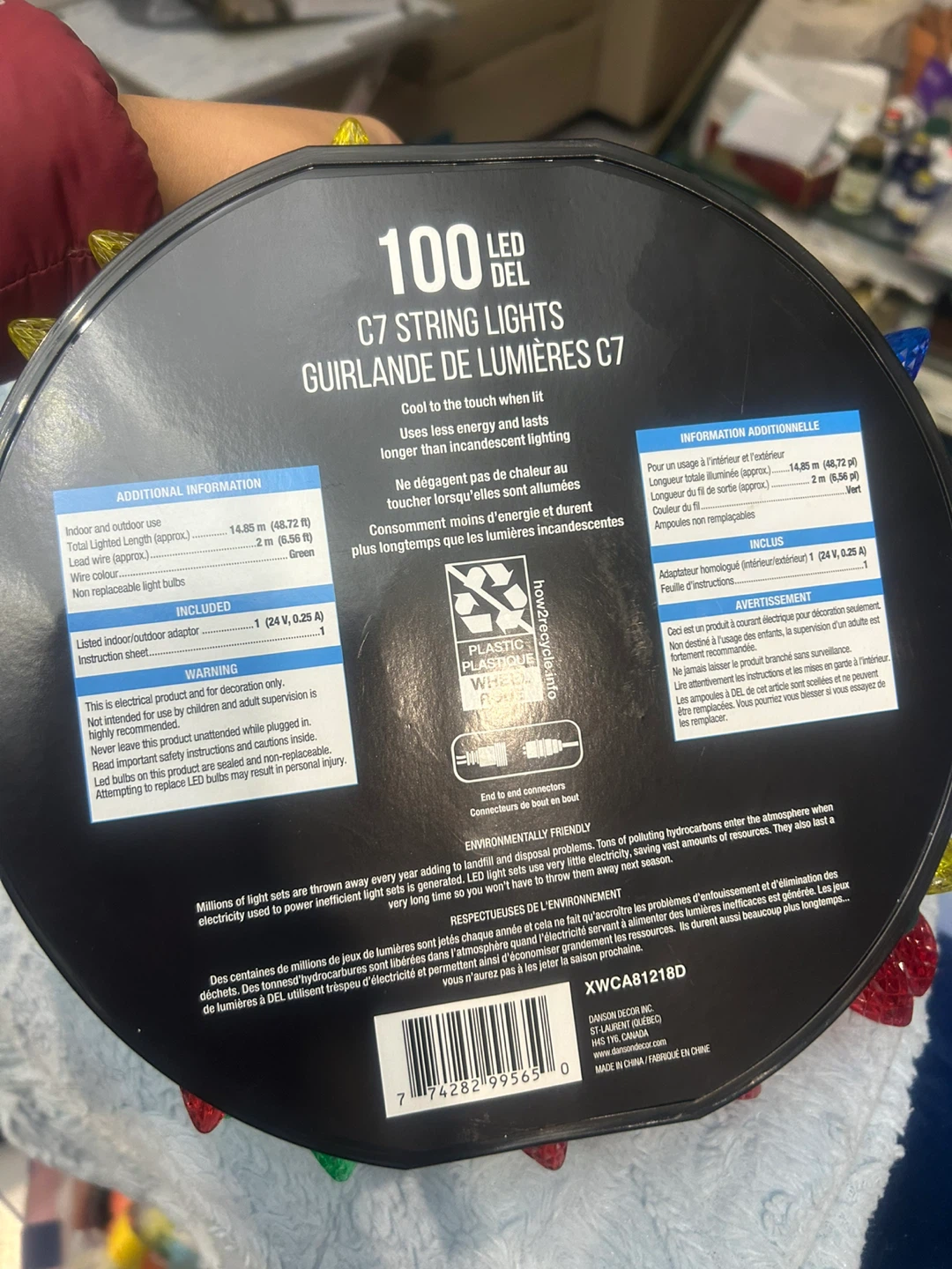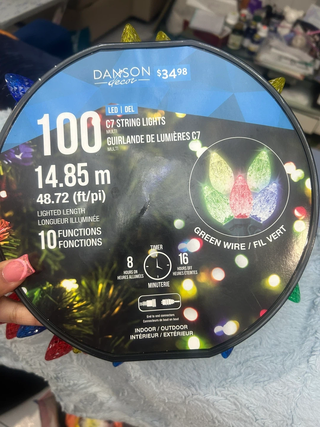 Danson Decor 100 LED C7 String Lights for indoor/outdoor use! The total lighted length is approximately 14.85 m (48.72 ft). It has 10 functions and a timer. The original price was $34.98