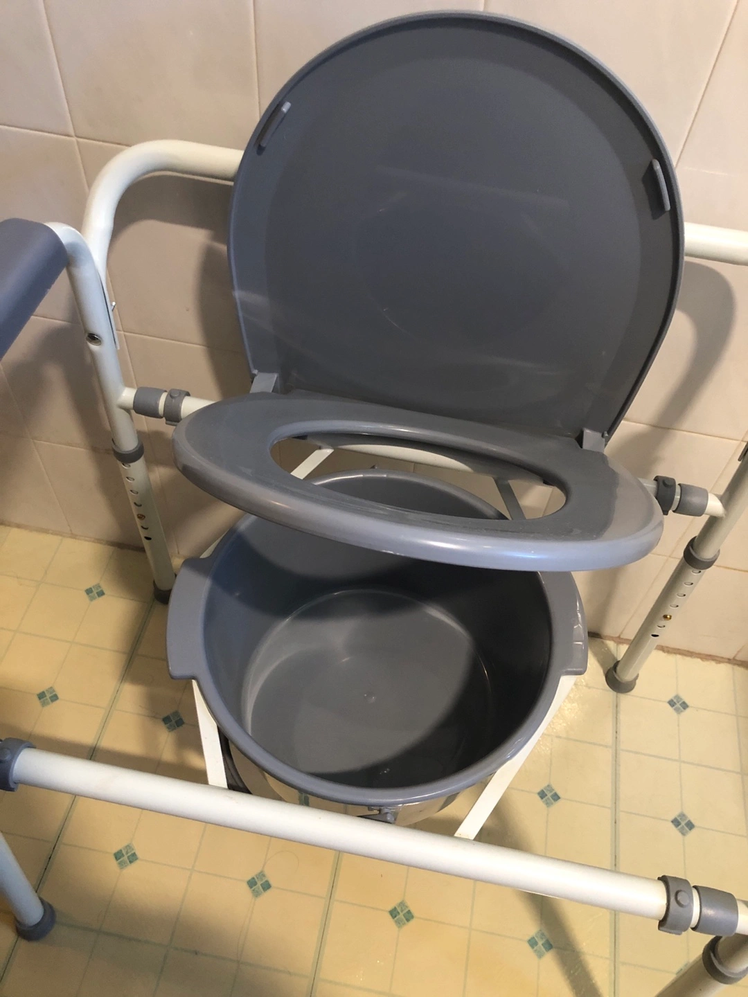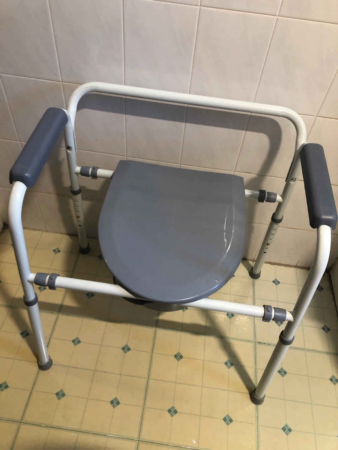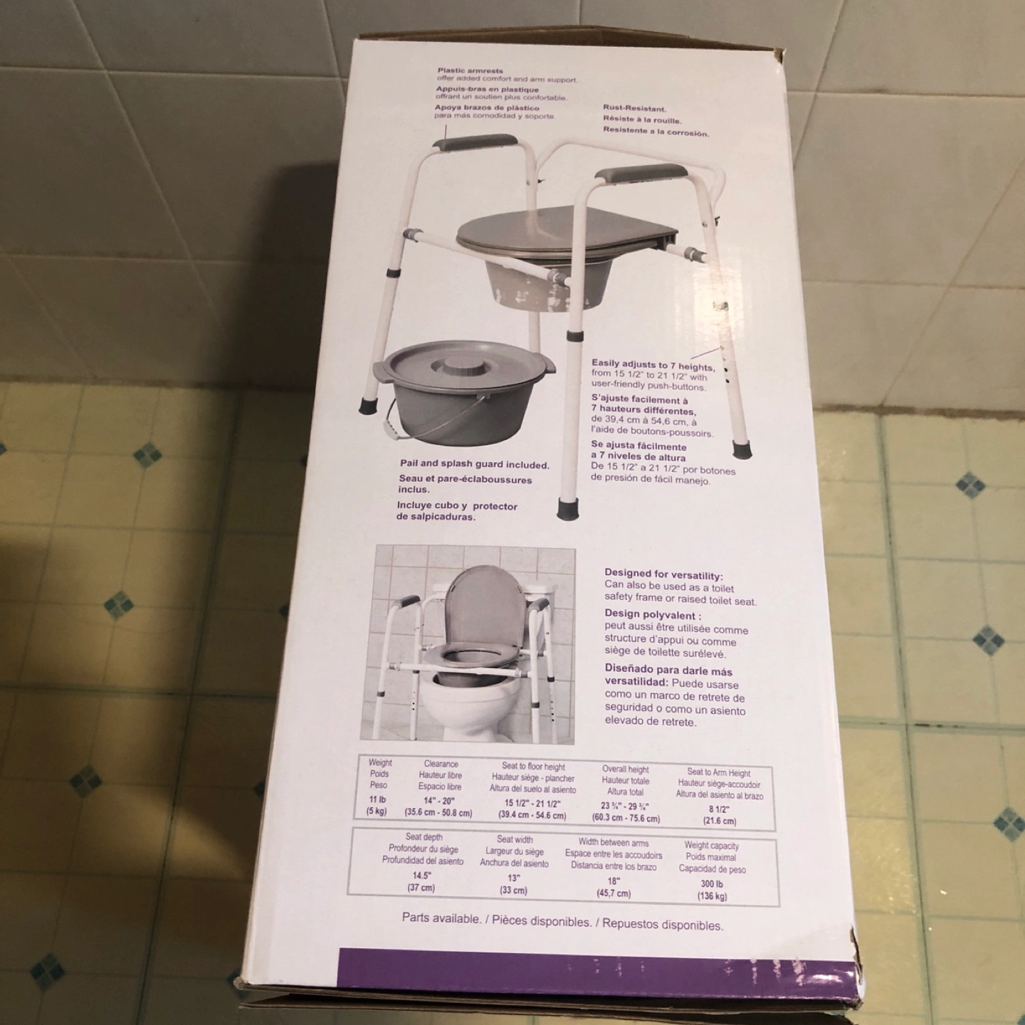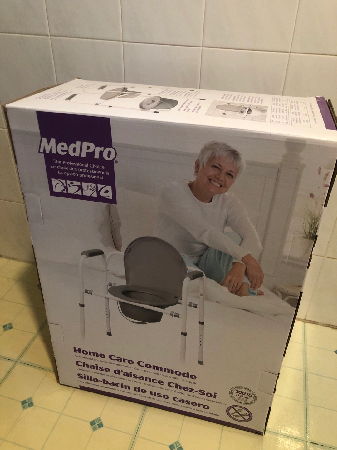Selling a MedPro Home Care Commode. It's designed for versatility and can be used on its own, as a toilet safety frame, or as a raised toilet seat. It's easily adjustable to 7 different heights with push-button adjustments. It also includes a pail and splash guard. The weight capacity is 300 lb (136 kg).
