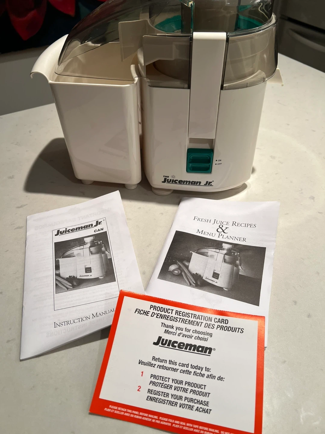 Selling a Juiceman Jr. juicer! It comes with the instruction manual and a recipe and menu planner booklet. Great for making fresh juices at home! Like new!