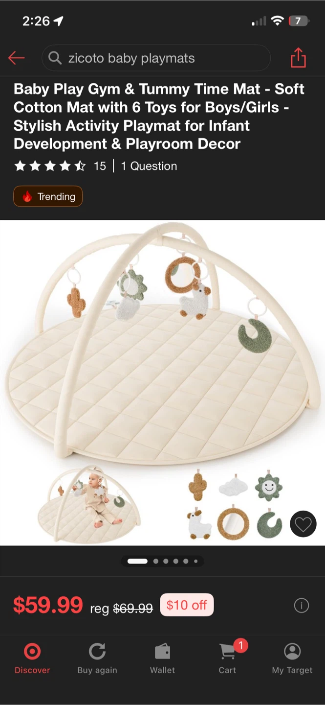 Bought two by accident and lost the receipt so I’m trynna get some of it back. I bought it for $78 but apparently is on sale now so I’m willing to negotiate… Selling a brand new Zicoto baby gym with toys! It comes in the original box and is perfect for babies +0 months. The playmat is made from soft and durable cotton material, ensuring a secure play environment with baby-safe toys. It also features a unique design providing ample space for your baby to play and is machine washable for hassle-free cleaning