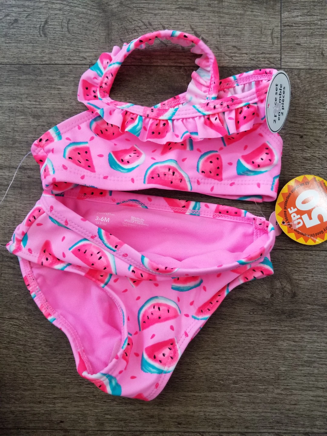 This cute 2-piece set features a fun watermelon print and is size 3-6M. It also provides UV protection for worry-free fun in the sun! New with tag