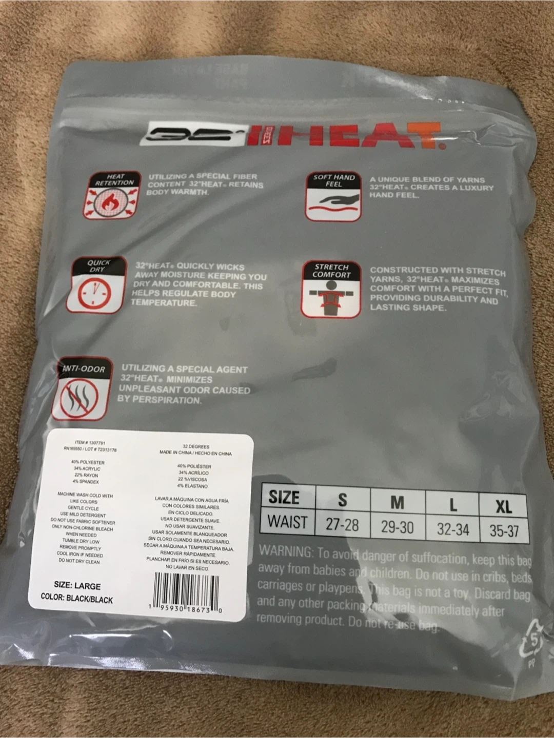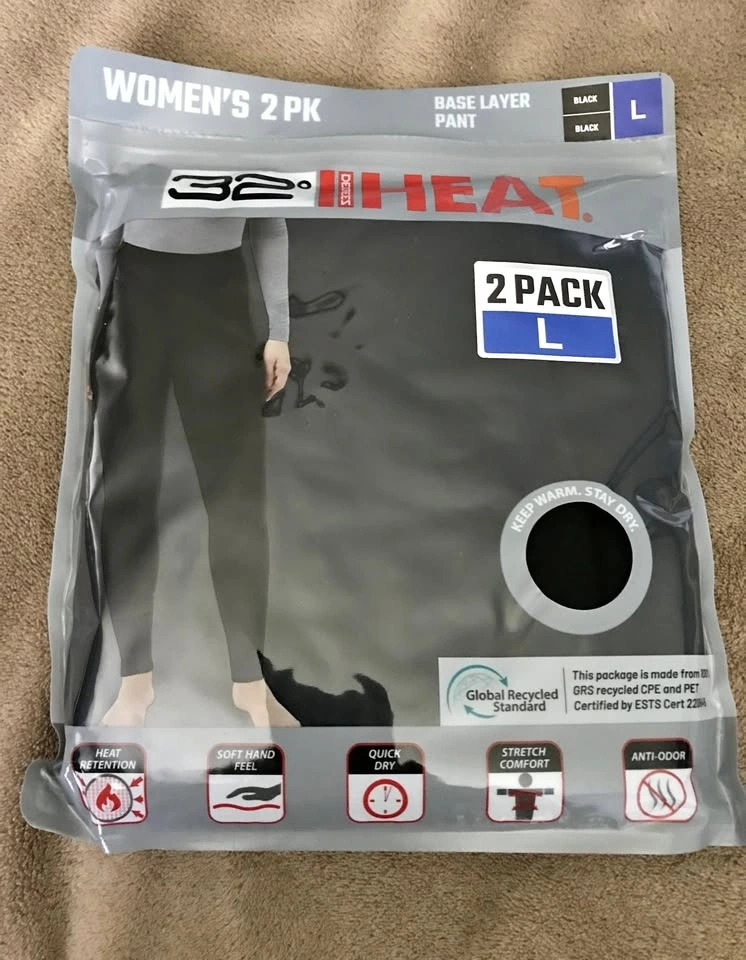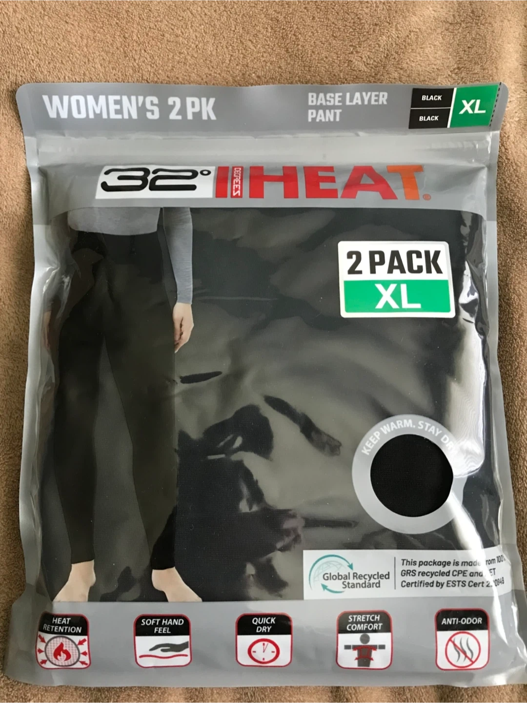 Women's base layer pants, size L or XL. $20 for each package. Package contains 2 pants.
