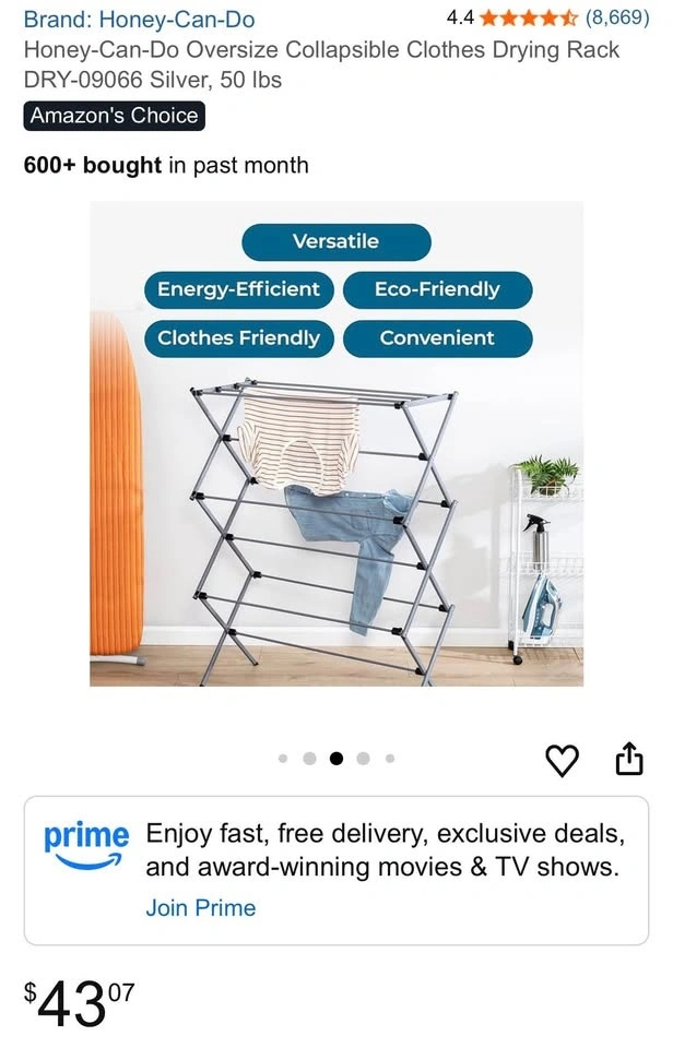 Selling a Honey-Can-Do Oversize Collapsible Clothes Drying Rack (Model DRY-09066) in excellent condition.