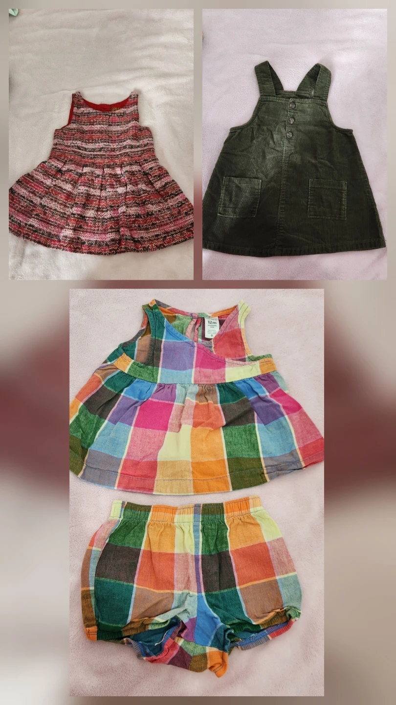 Selling a bundle of adorable kids' clothing! Includes a variety of dresses with floral prints and colourful patterns, a cute butterfly-themed shirt with jeans, and a cozy jacket with pants. Perfect for your little one's wardrobe! EACH COSTS 7 DOLLARS! And I have a lot more clothes for 1-2 year olds if your interested and if you want i can send you pictures. But you have to come this weekend.