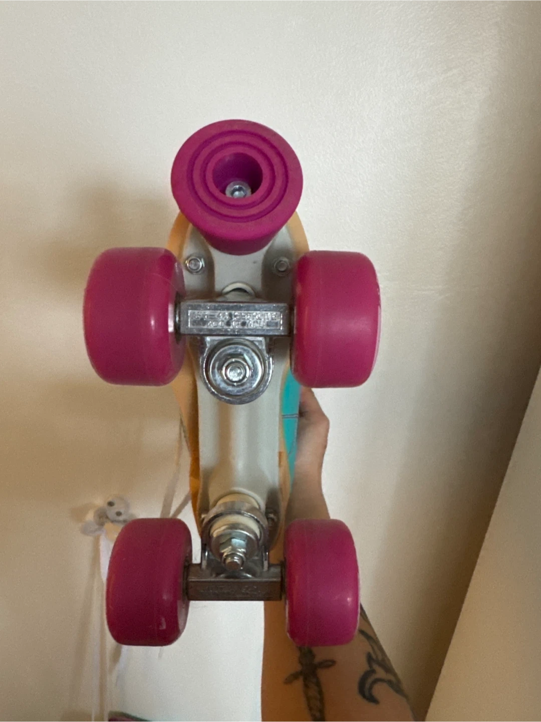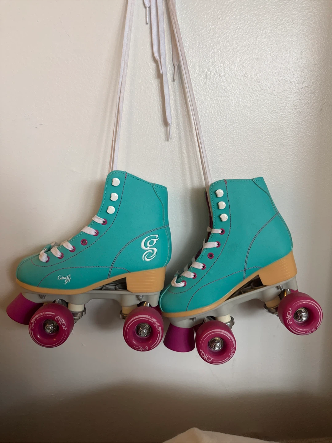 Selling a pair of Candi Girl roller skates! They're a women's size 3 and feature a cool teal and pink colour scheme. Perfect for some fun at the rink or cruising around the neighbourhood. Never used outside, used once inside.