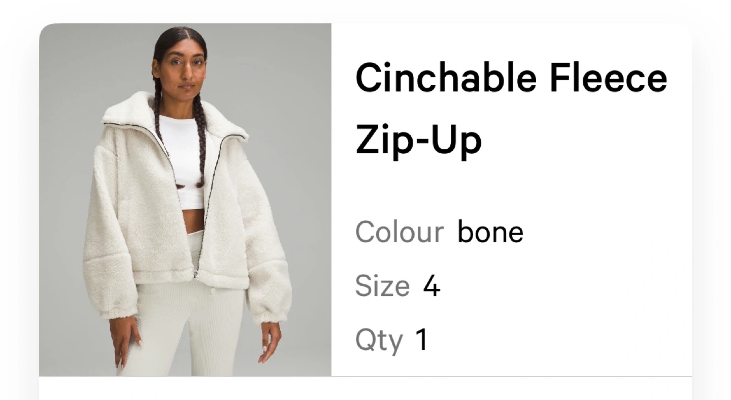 Selling a Lululemon Cinchable Fleece Zip-Up in a beautiful bone colour! It's a size 4 and in great condition. Perfect for layering or wearing on its own. The fleece is so soft and cozy!