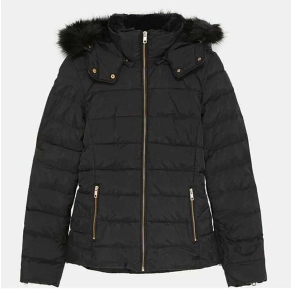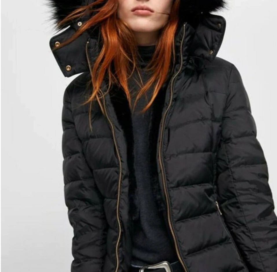 🧡 Zara Black Puffer Coat with Faux Fur Hood