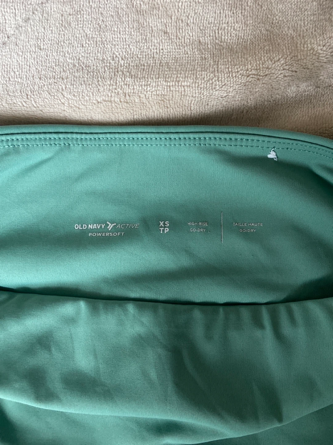 Selling an Old Navy Active Powersoft skort in size XS! It's a high-rise, go-dry skort, perfect for staying active and comfortable. The colour is a lovely teal green.