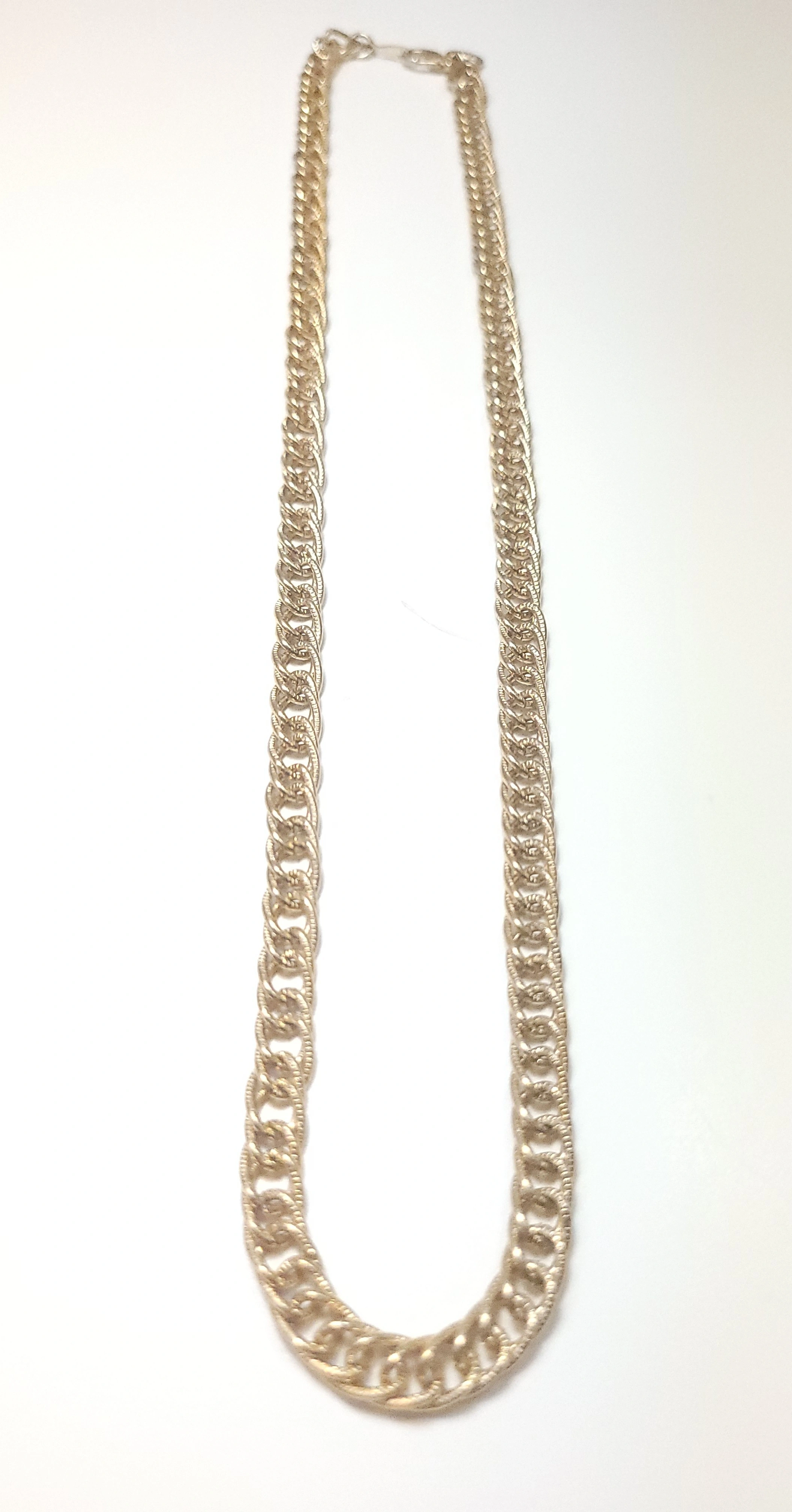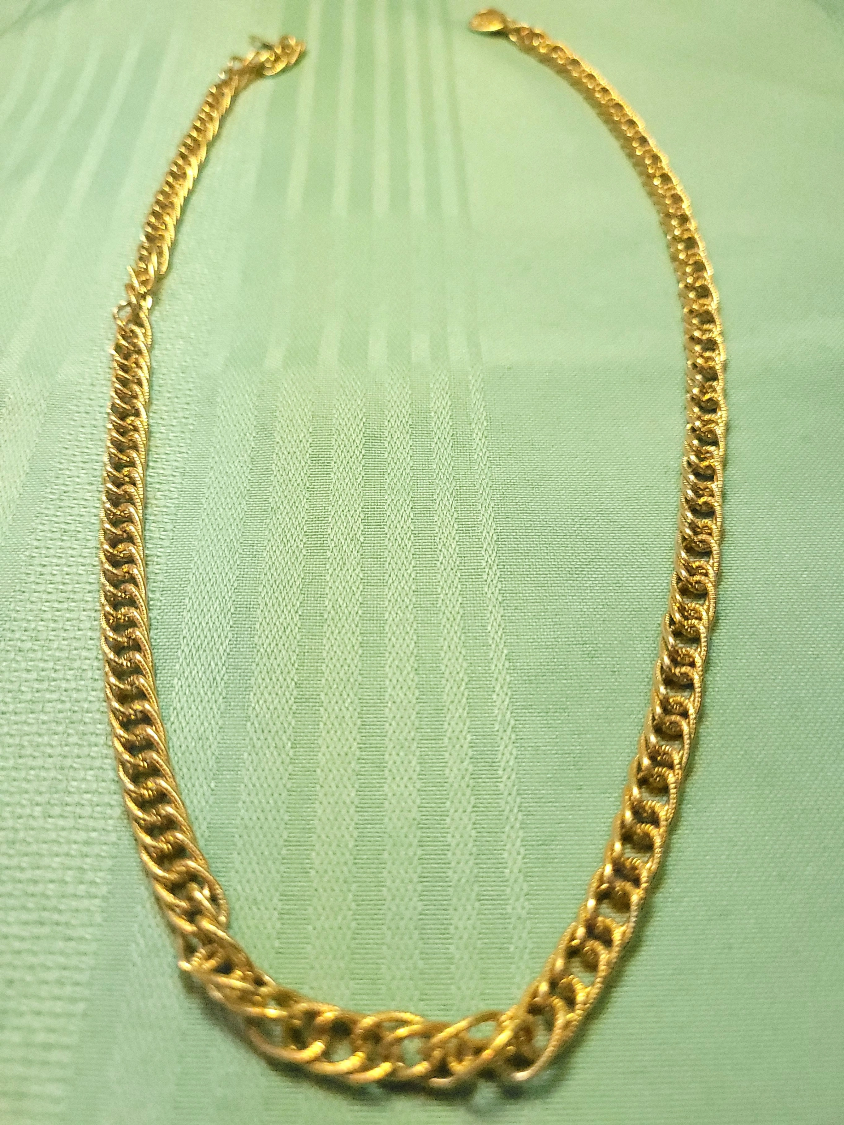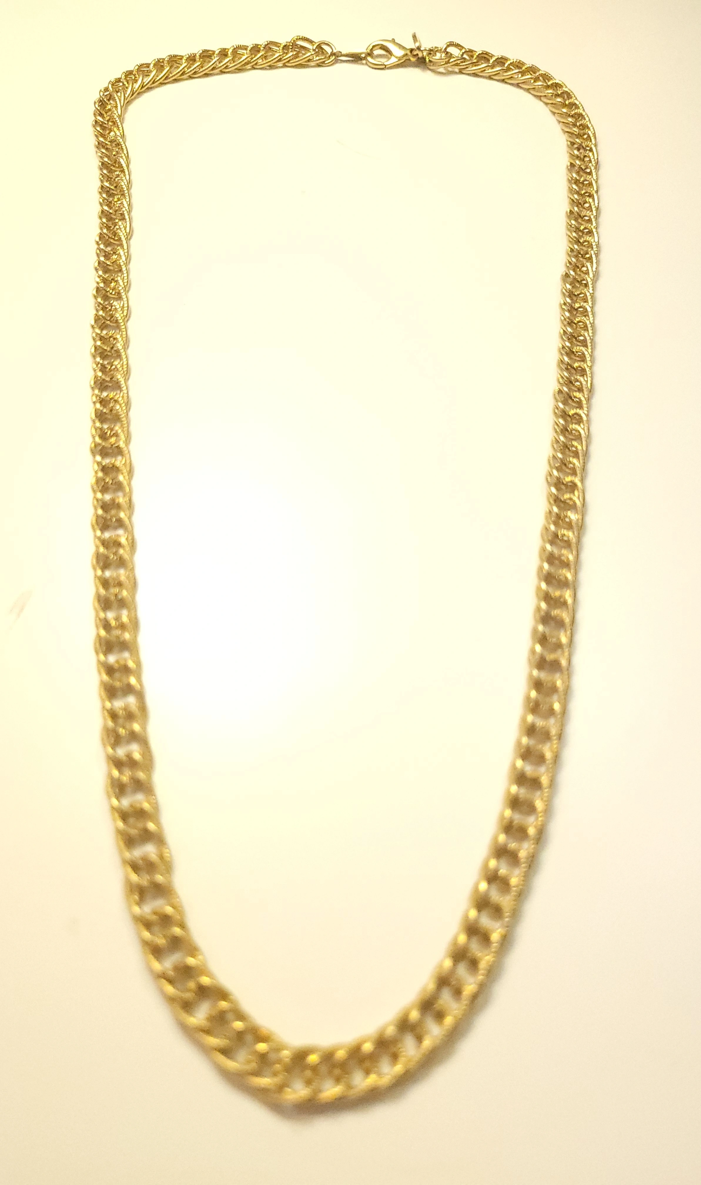 Classic 1980s vintage necklace from Coro Canada. This piece features a textured, double-row curb link design in a bright, polished gold-tone finish. It is a versatile "investment" style chain that has a nice weight and drape.