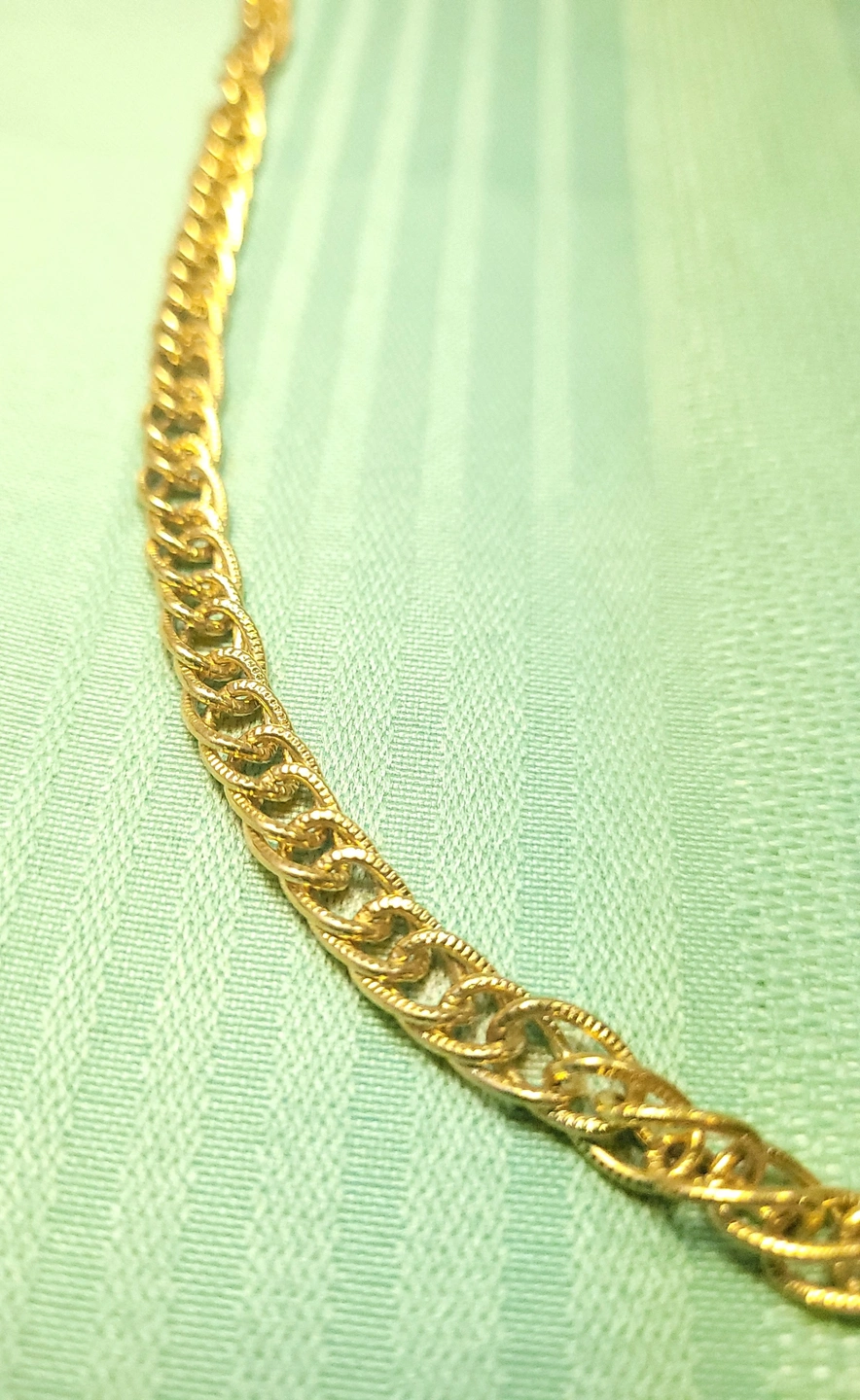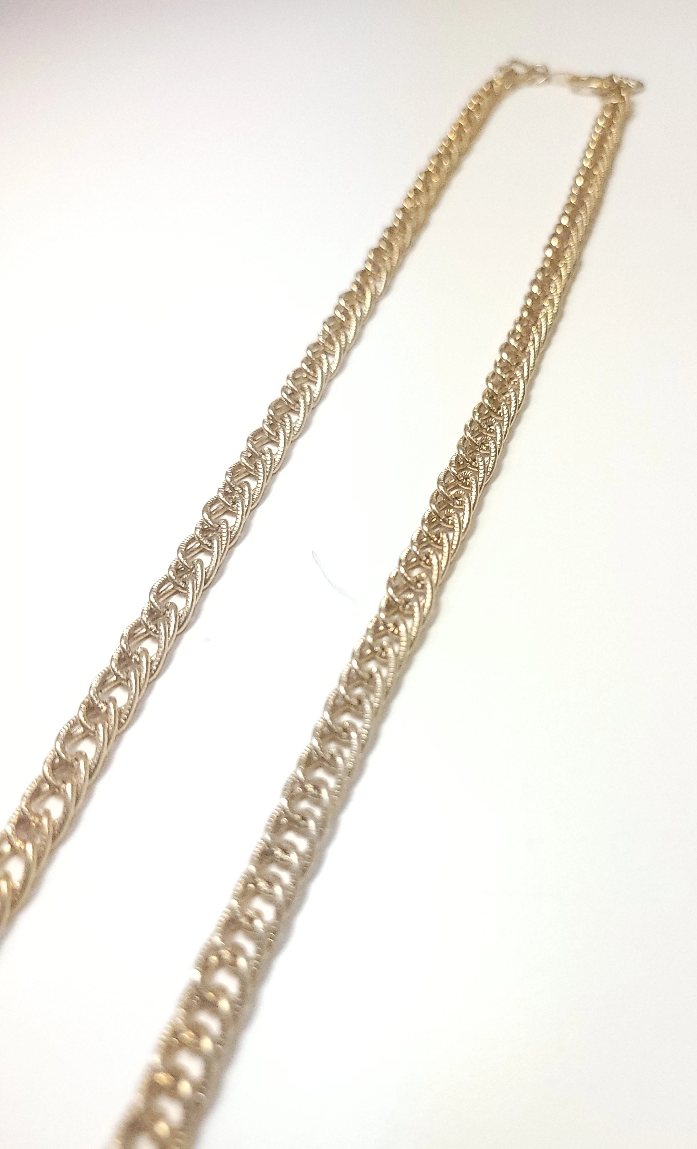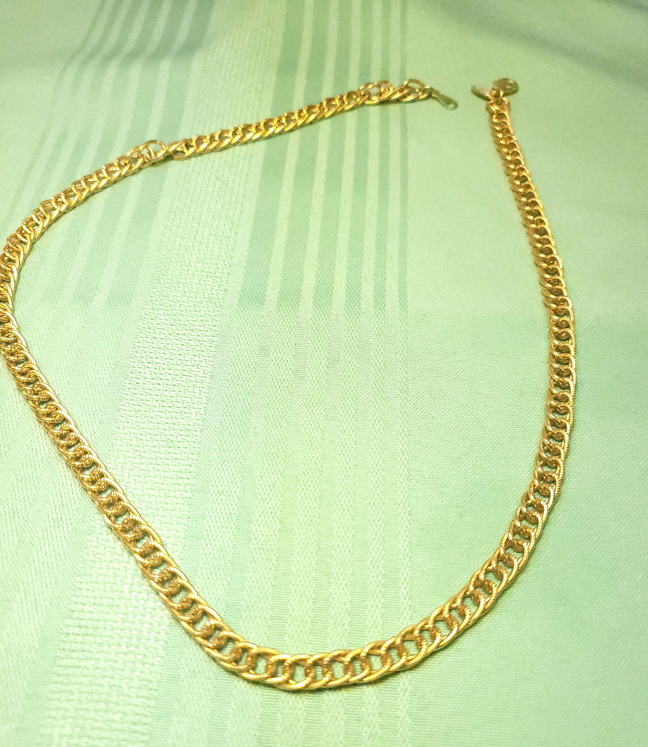 Classic 1980s vintage necklace from Coro Canada. This piece features a textured, double-row curb link design in a bright, polished gold-tone finish. It is a versatile "investment" style chain that has a nice weight and drape.