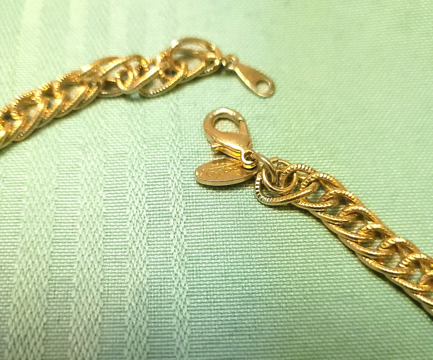 Condition: This item is in good vintage condition. The gold plating is exceptionally clean with no visible pitting or "greening." The clasp is strong and works perfectly.
