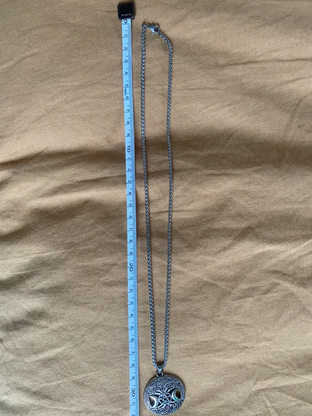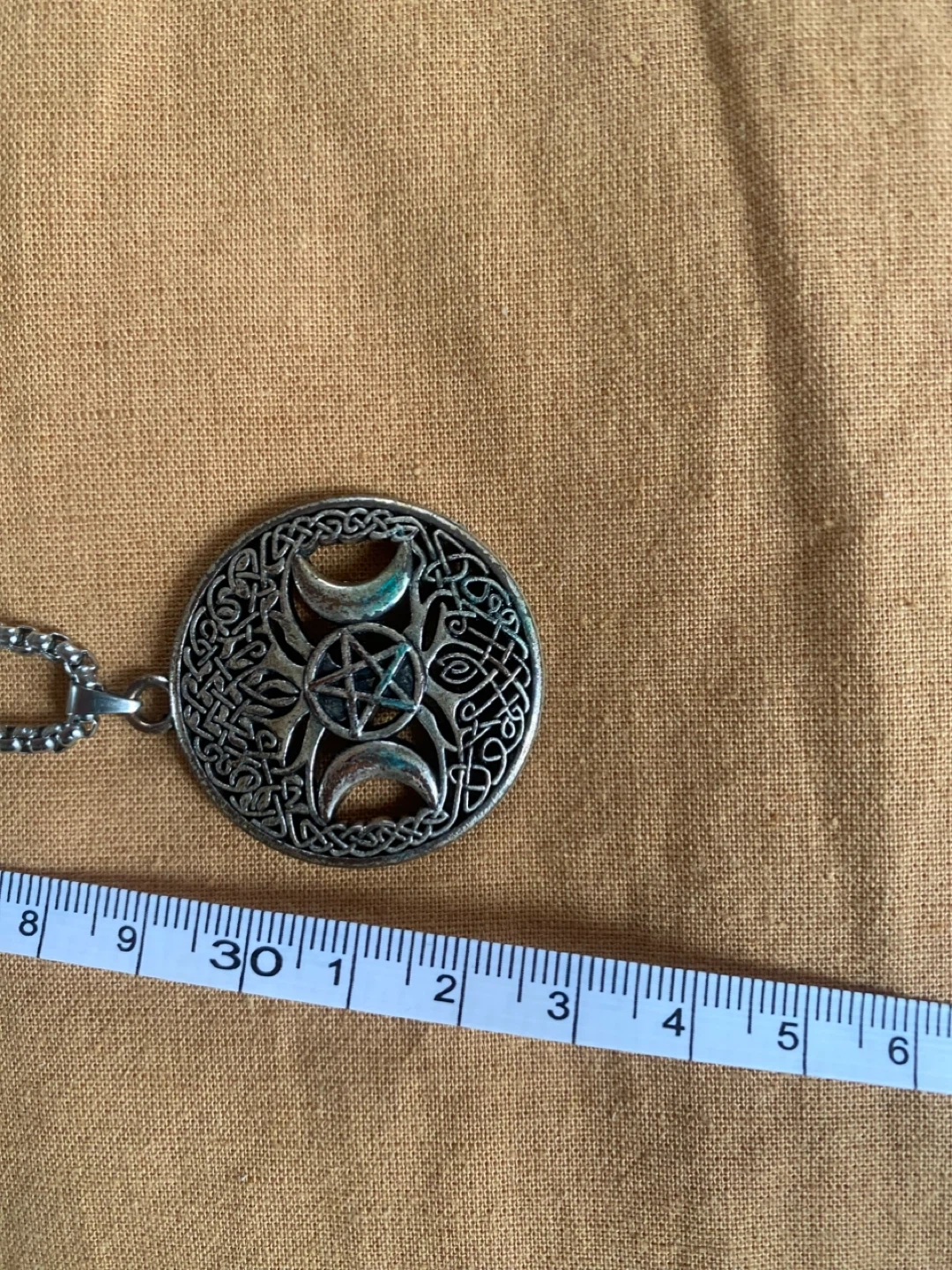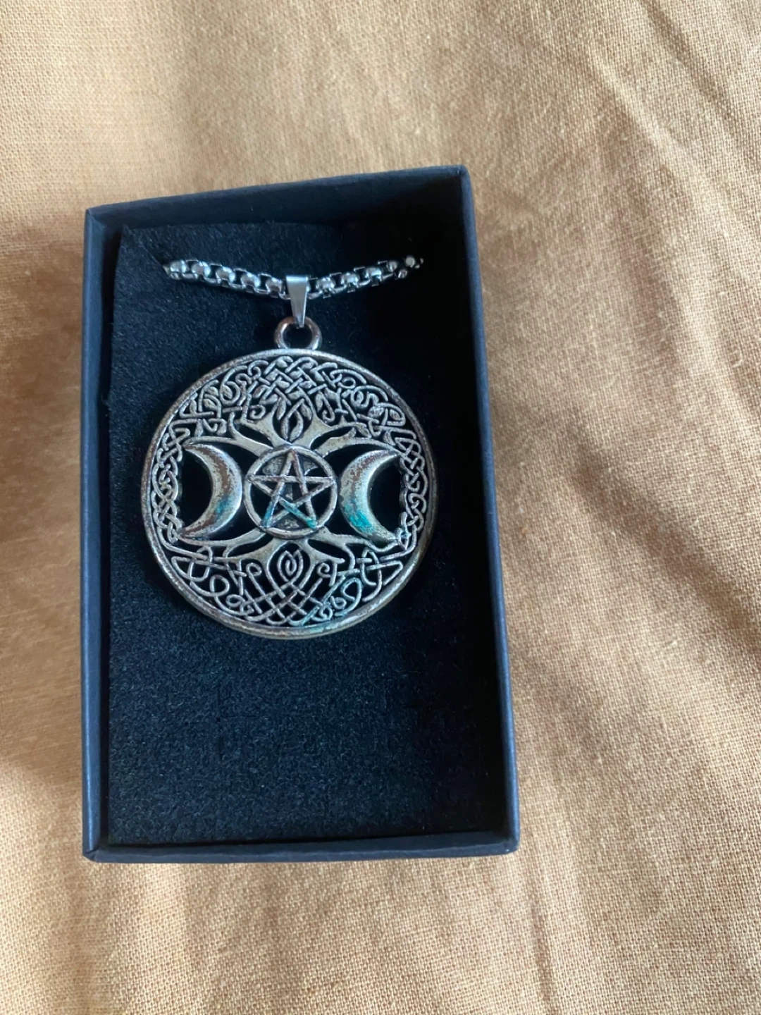 Selling a beautiful Triple Moon pendant necklace! It comes in a box for safekeeping. The pendant has a lovely intricate design. The chain is approximately 24 inches long.