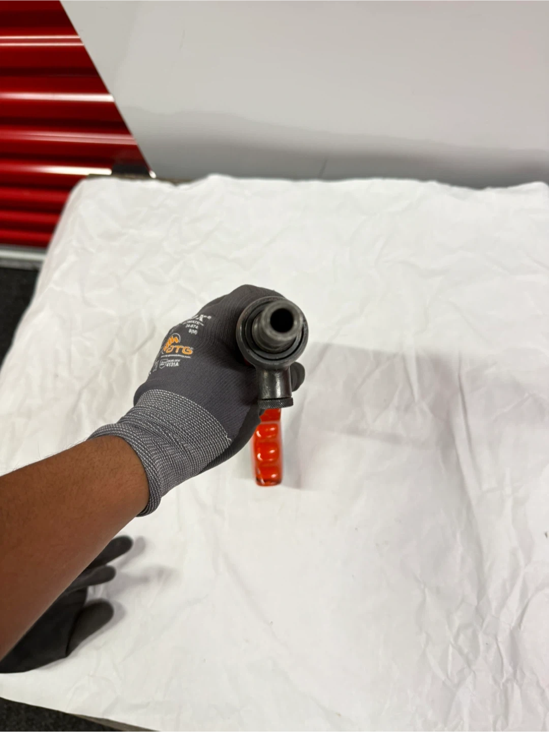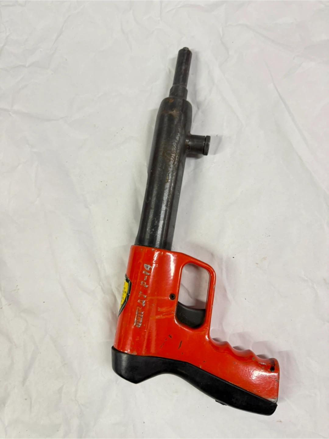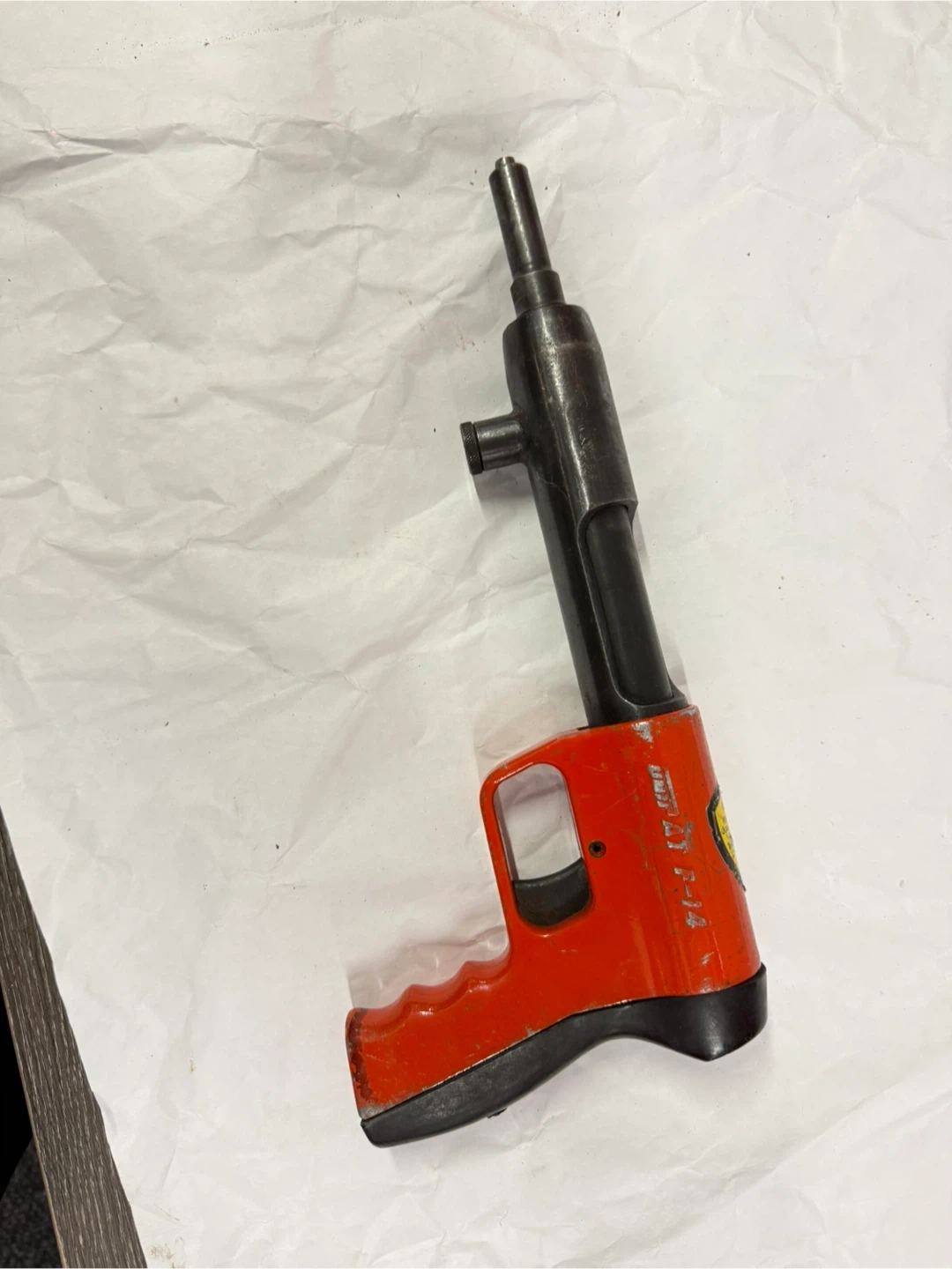 Selling a vintage pneumatic air hammer tool! It's a unique piece with a red handle and black body. Perfect for collectors or anyone looking for a classic tool.