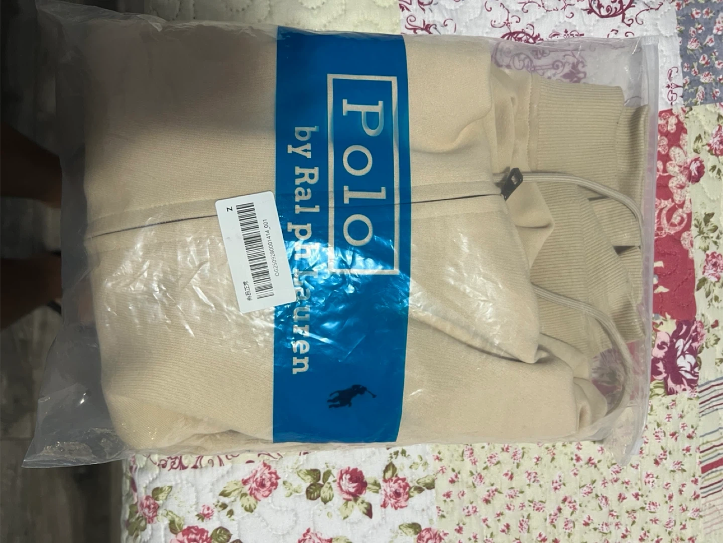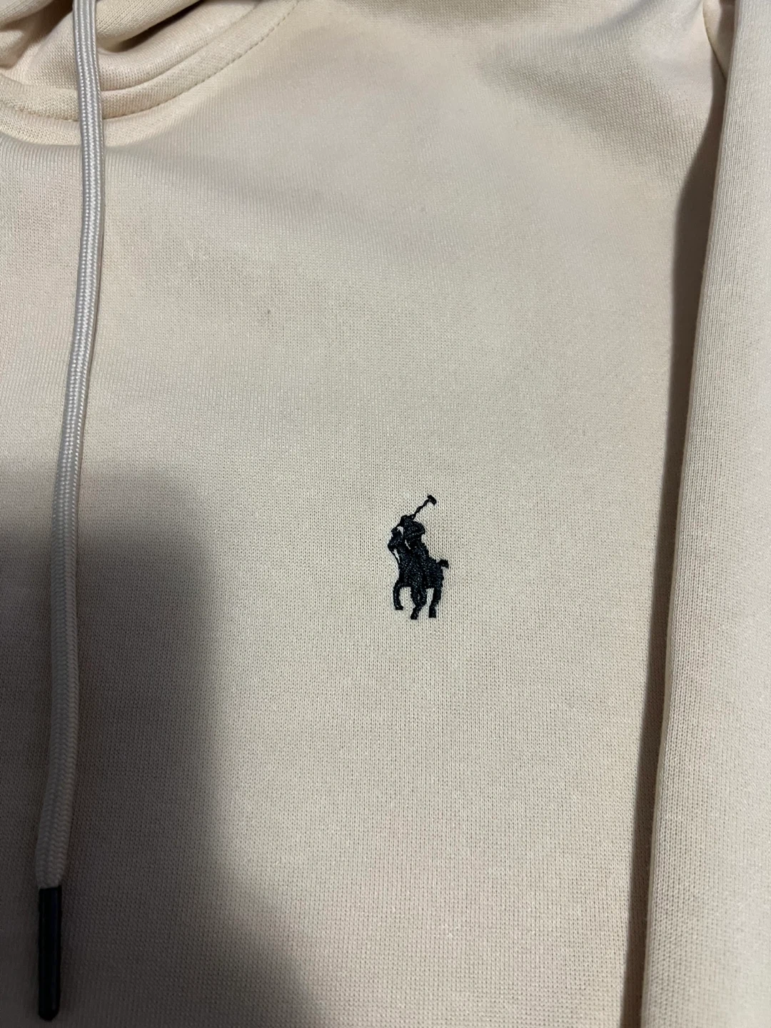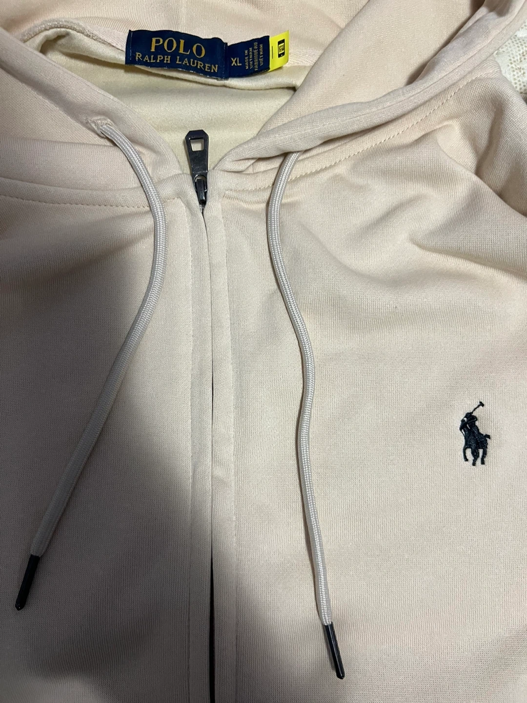 Selling a Ralph Lauren Polo full zip hoodie in size L. It's a light beige colour and in great condition. Perfect for layering or wearing on its own!