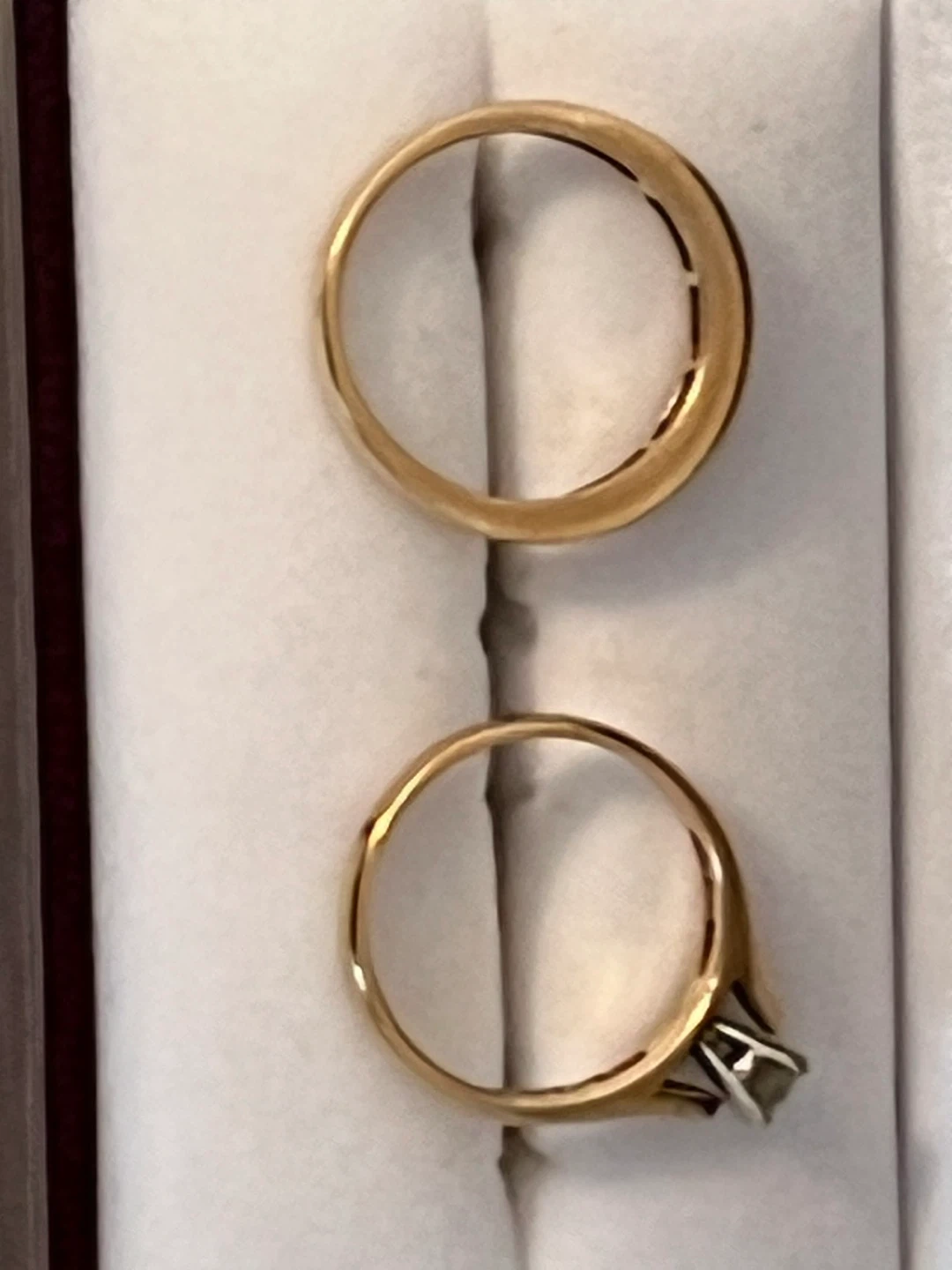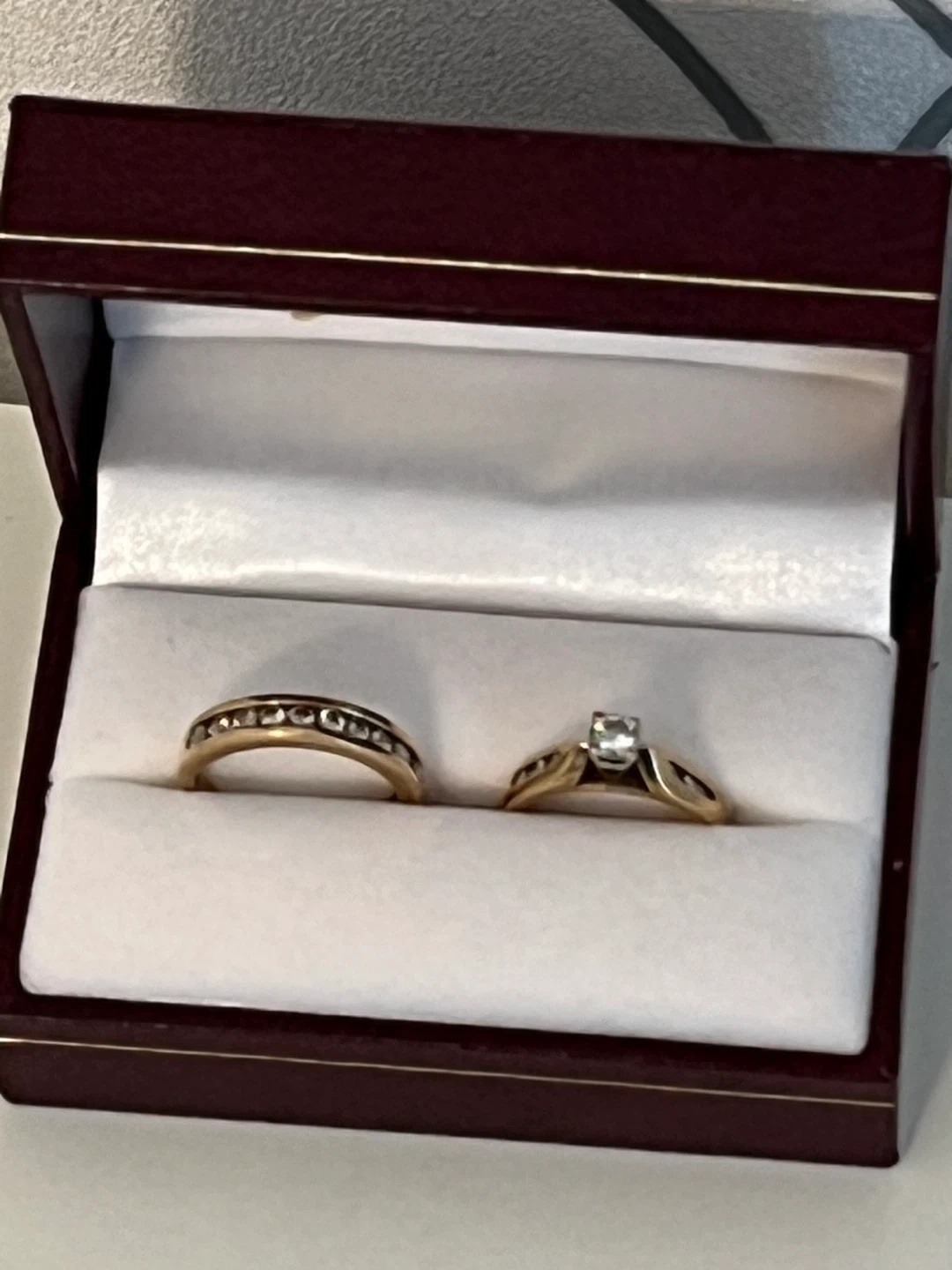 Selling a wedding ring set, includes both the engagement ring and wedding band. Comes in the original box from Taing Jeweller.