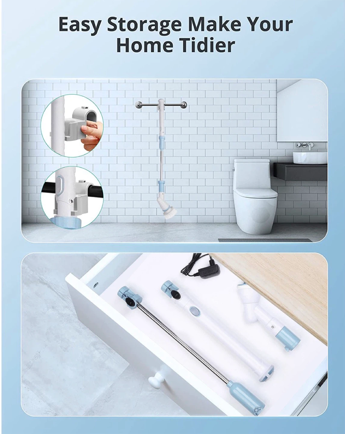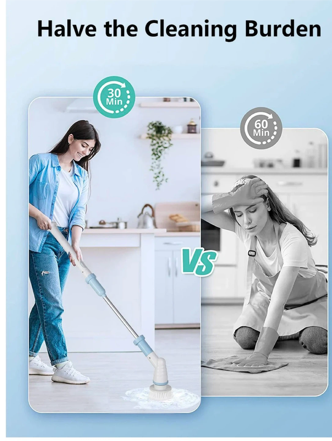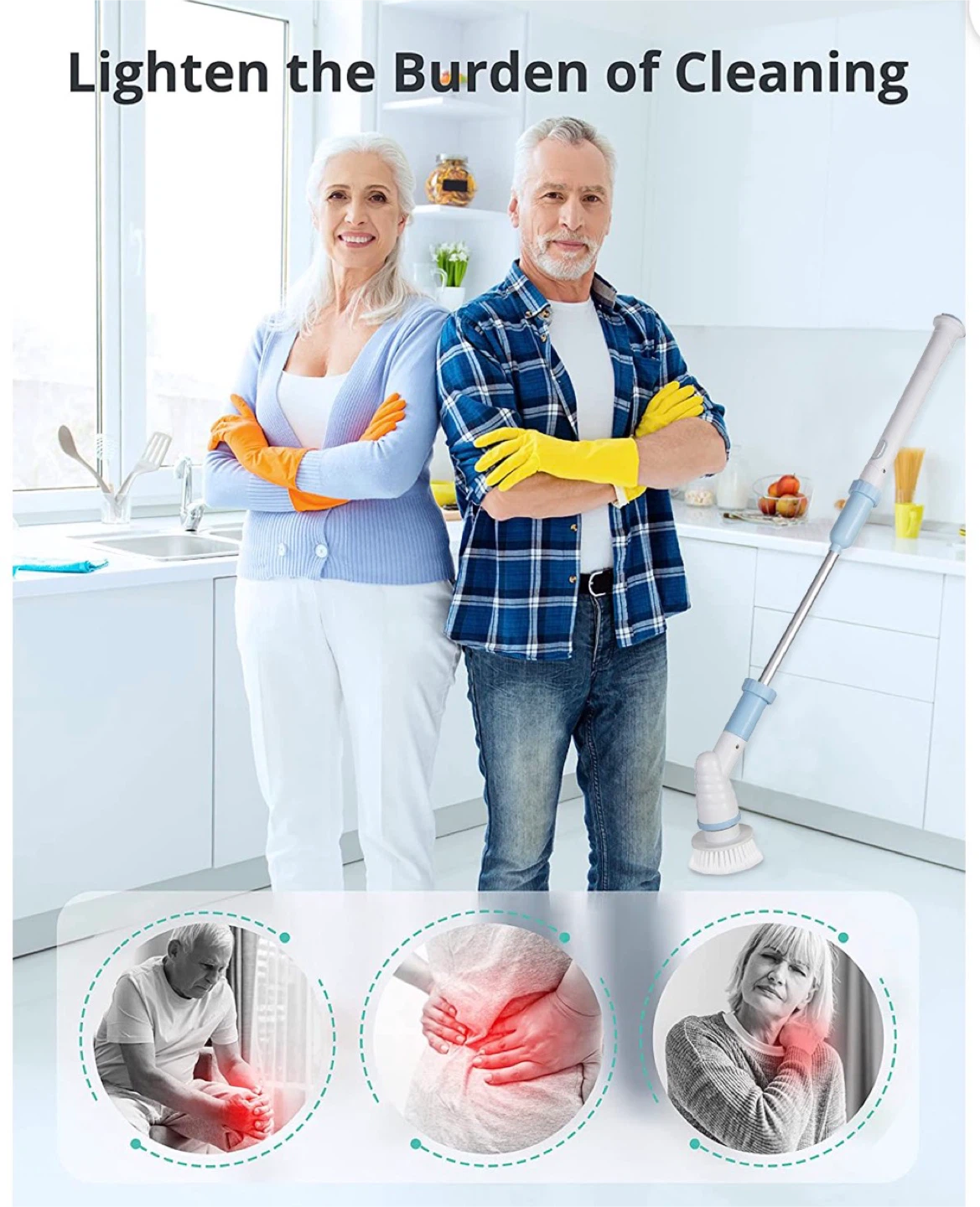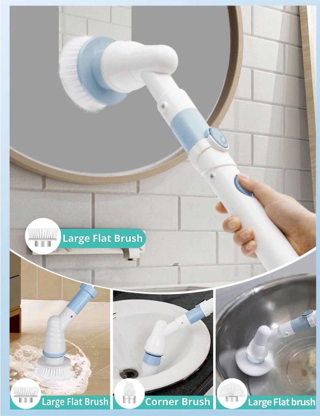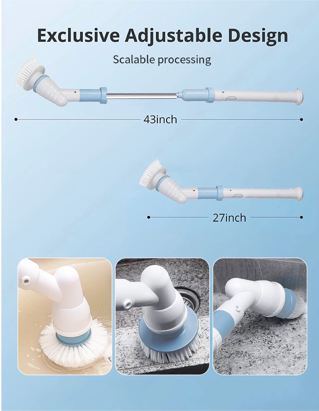 Electric Spin Scrubber with Hard Bristle Crevice Cleaning Brush-Powerful Bathroom Accessories-Spin Mop Set for Kitchen and Bathroom-Cleaning Supplies(43 in)