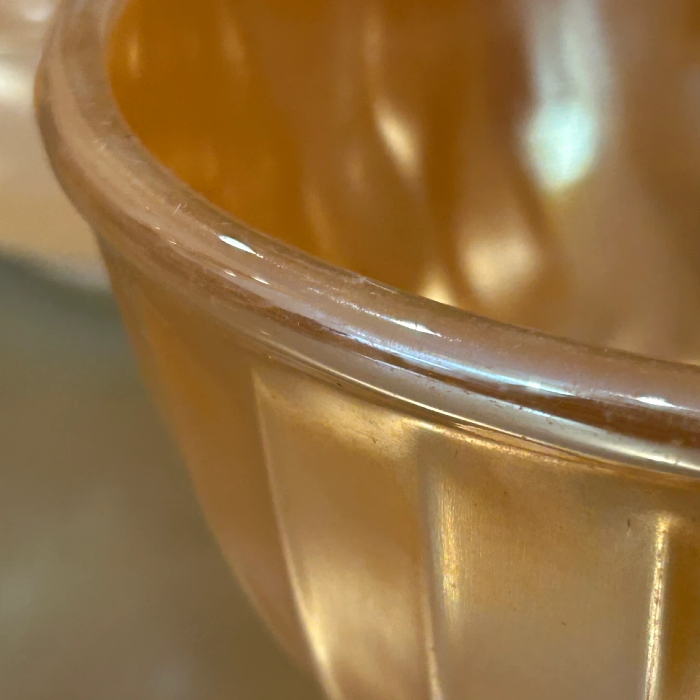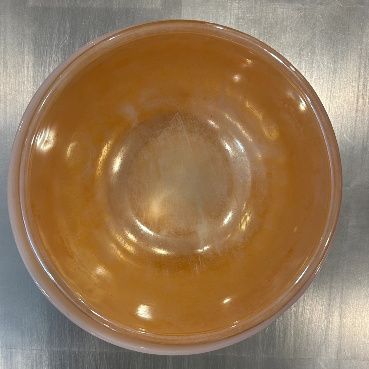Peach lustre Fire-King pieces are increasingly difficult to source, especially as matching or complementary pairs. Collectors value: