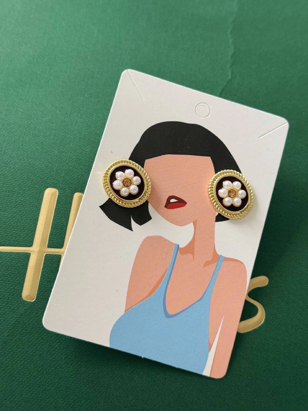 Beautiful gold-toned stud earrings. Oval shape. Feature a central pearl flower design. Perfect for everyday wear or a special occasion.