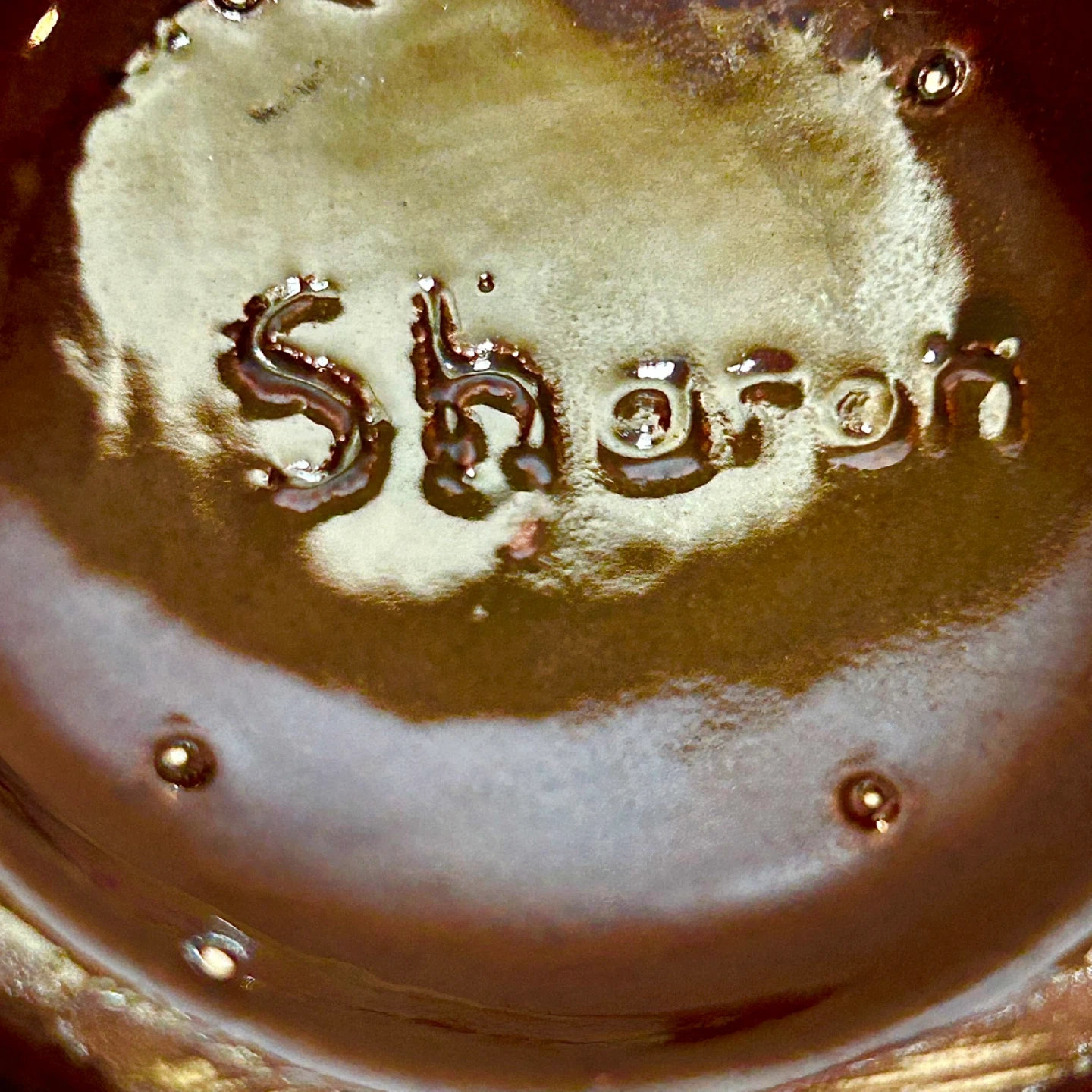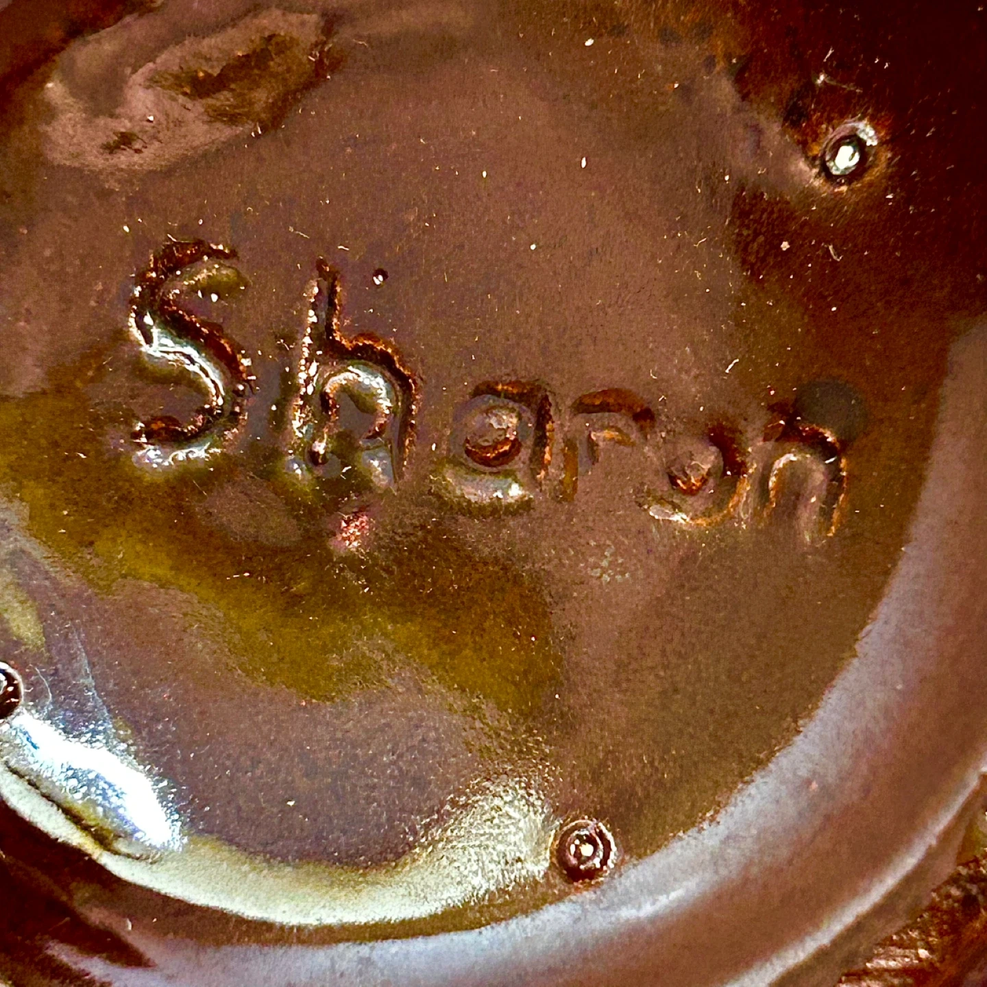 The base is clearly incised “Sharon”, executed before firing. This signature is consistent with Sharon Art Pottery / Sharon Studio Pottery, a name associated with American regional studio ceramics active primarily in the mid-20th century, often linked by collectors to Ohio and Pennsylvania studio traditions. Pieces bearing this mark are uncommon, especially in this size, condition, and decorative quality.