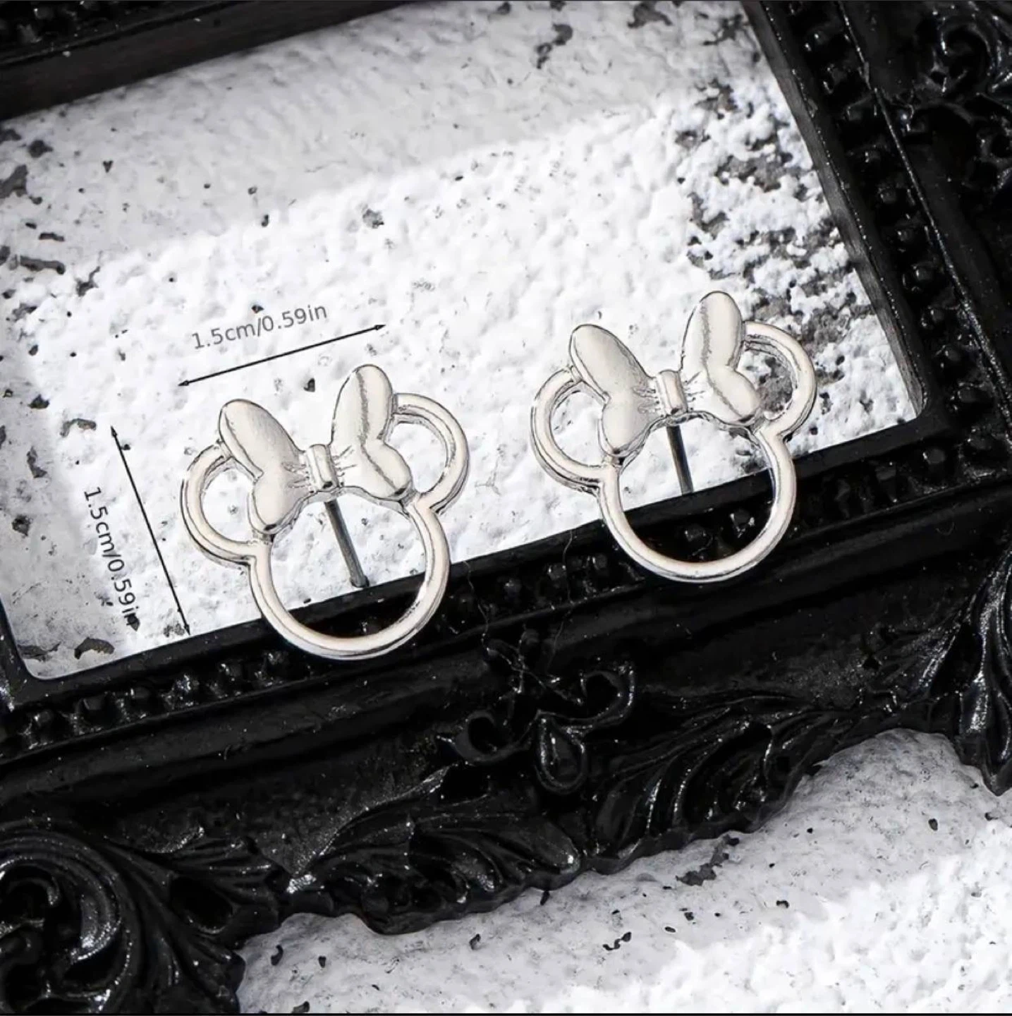 Silver-toned Minnie Mouse head stud earrings. Small and cute. Perfect for everyday wear.