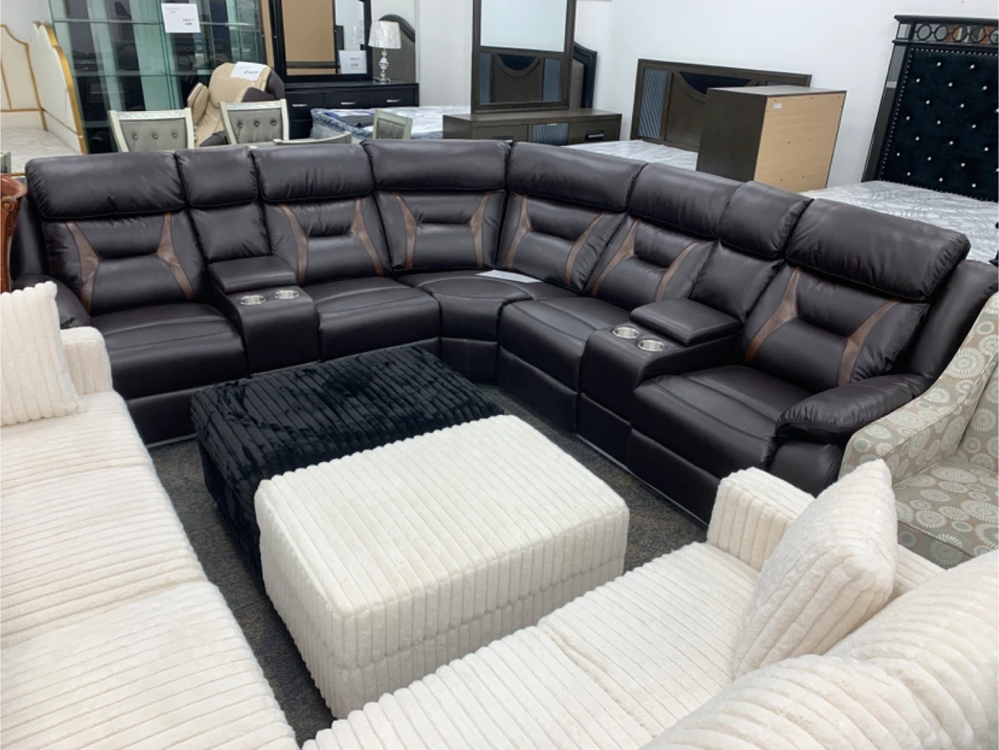 Brown Leather recliner Sectional Sofa