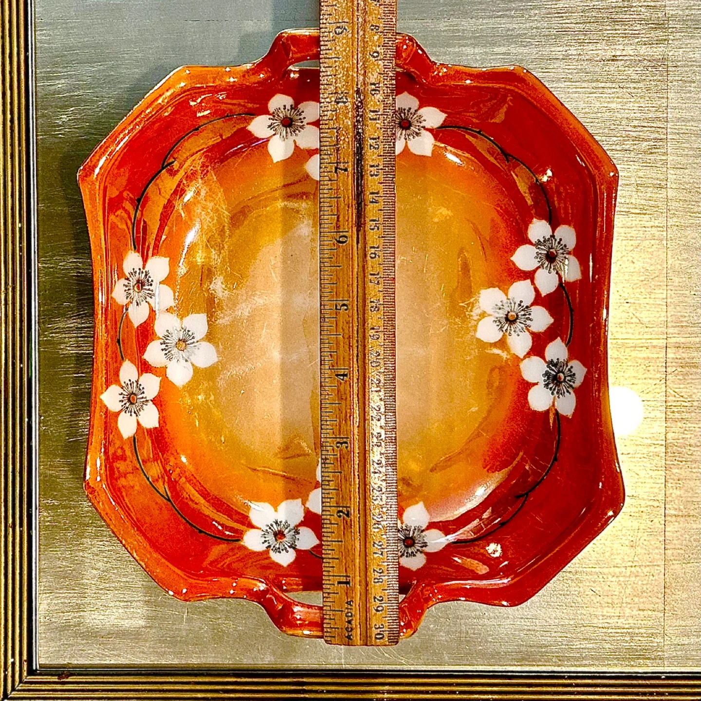 Authentic Royal R.S. Prussia porcelain, marked Royal ★ R.S. Tillowitz, featuring an exceptional hand-painted floral design with a rich oxblood red to amber gradient glaze and scalloped form. This is a genuine turn-of-the-century European porcelain serving piece, produced during the golden era of Prussian decorative ceramics.