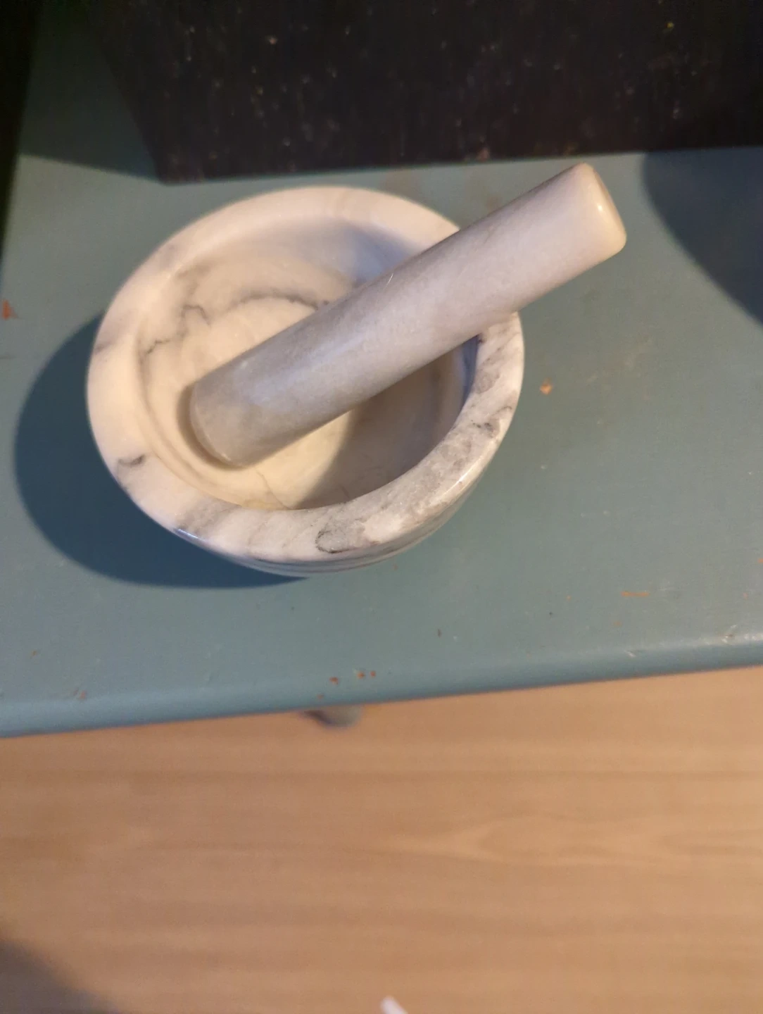 Selling a marble mortar and pestle set! It's perfect for grinding herbs and spices. The set is made of beautiful marble, adding a touch of elegance to your kitchen. It's in great condition and ready for a new home