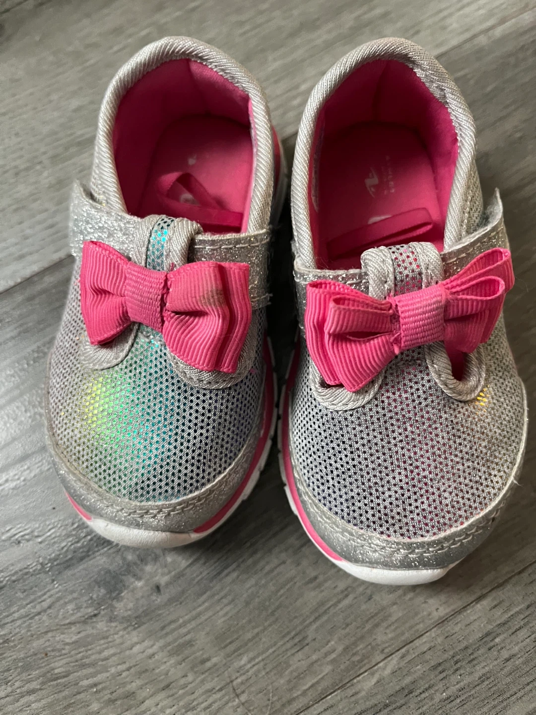 Cute pair of toddler shoes from Athletic Works! They are a size 5 and in good condition with a sweet pink bow detail