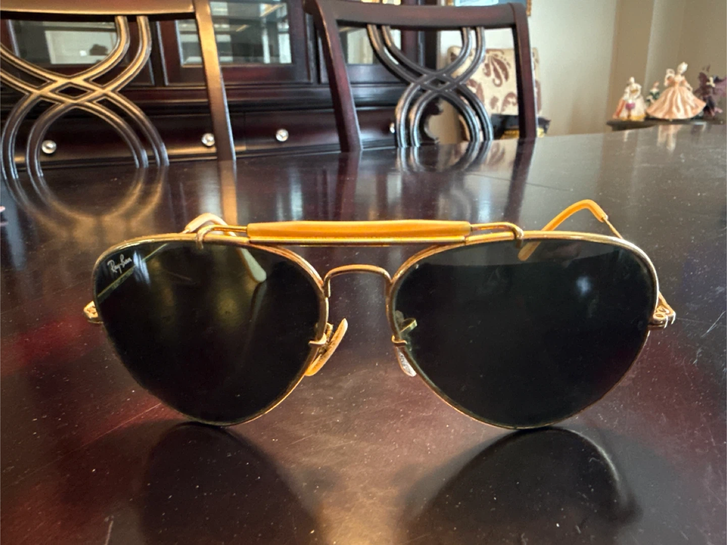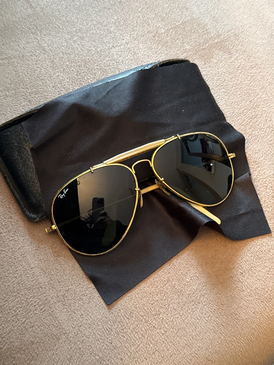 Selling a pair of classic Ray-Ban aviator sunglasses. They come with a case and a cleaning cloth. These sunglasses are in great condition and ready for a new owner!
