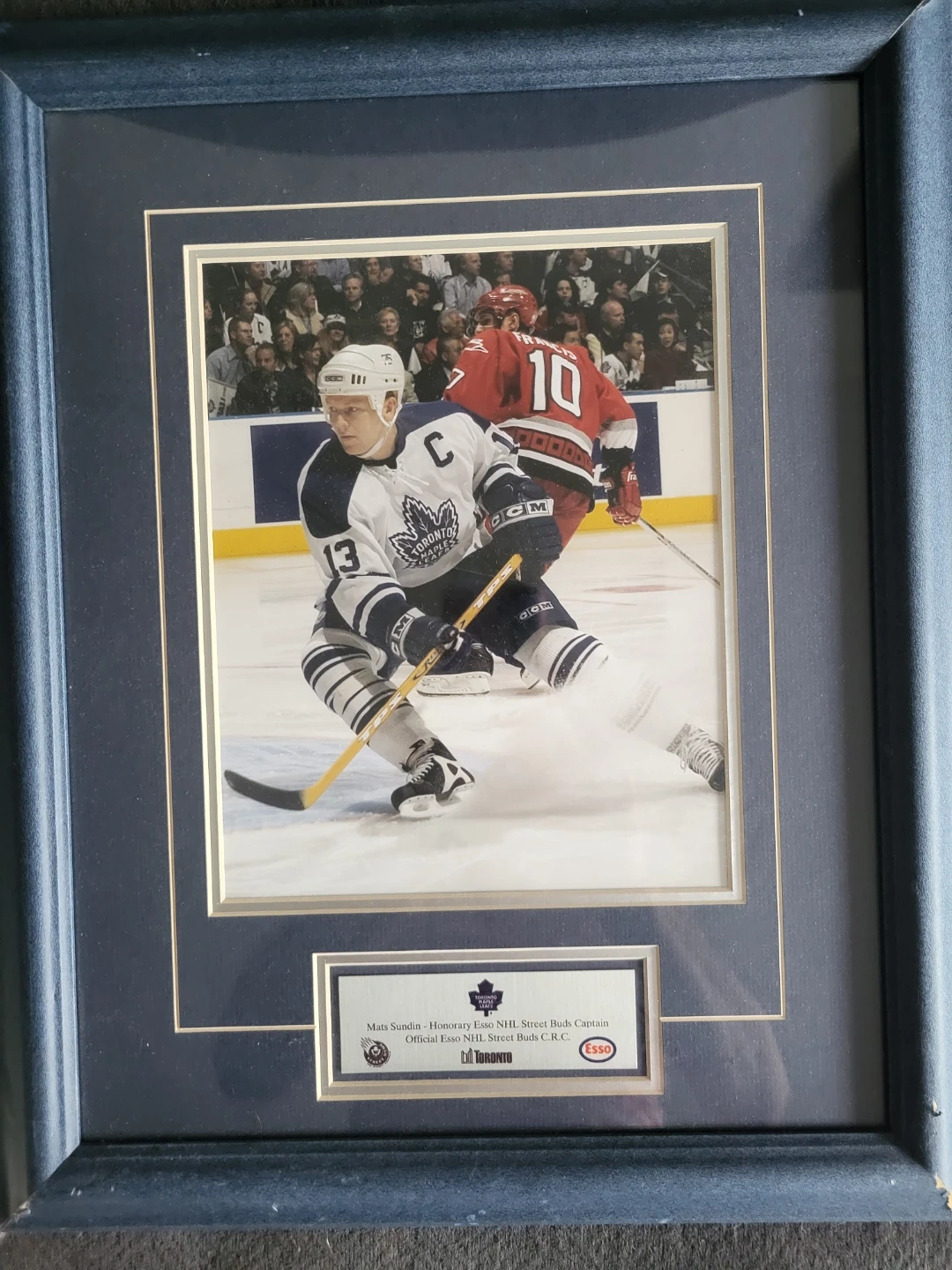 Framed photo of Mats Sundin in action with the Toronto Maple Leafs! It's a great piece of memorabilia for any Leafs fan some damage on corner of frame