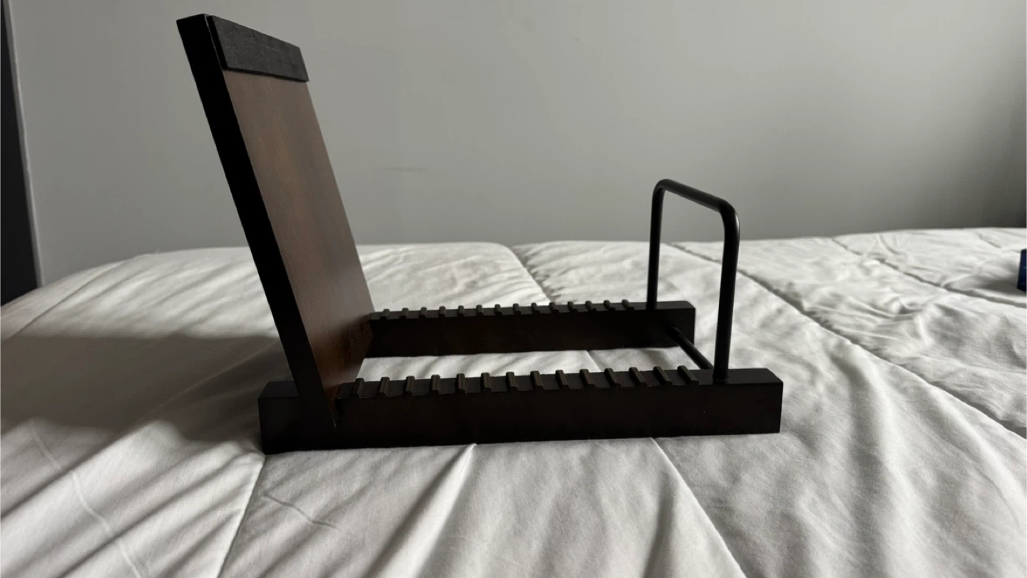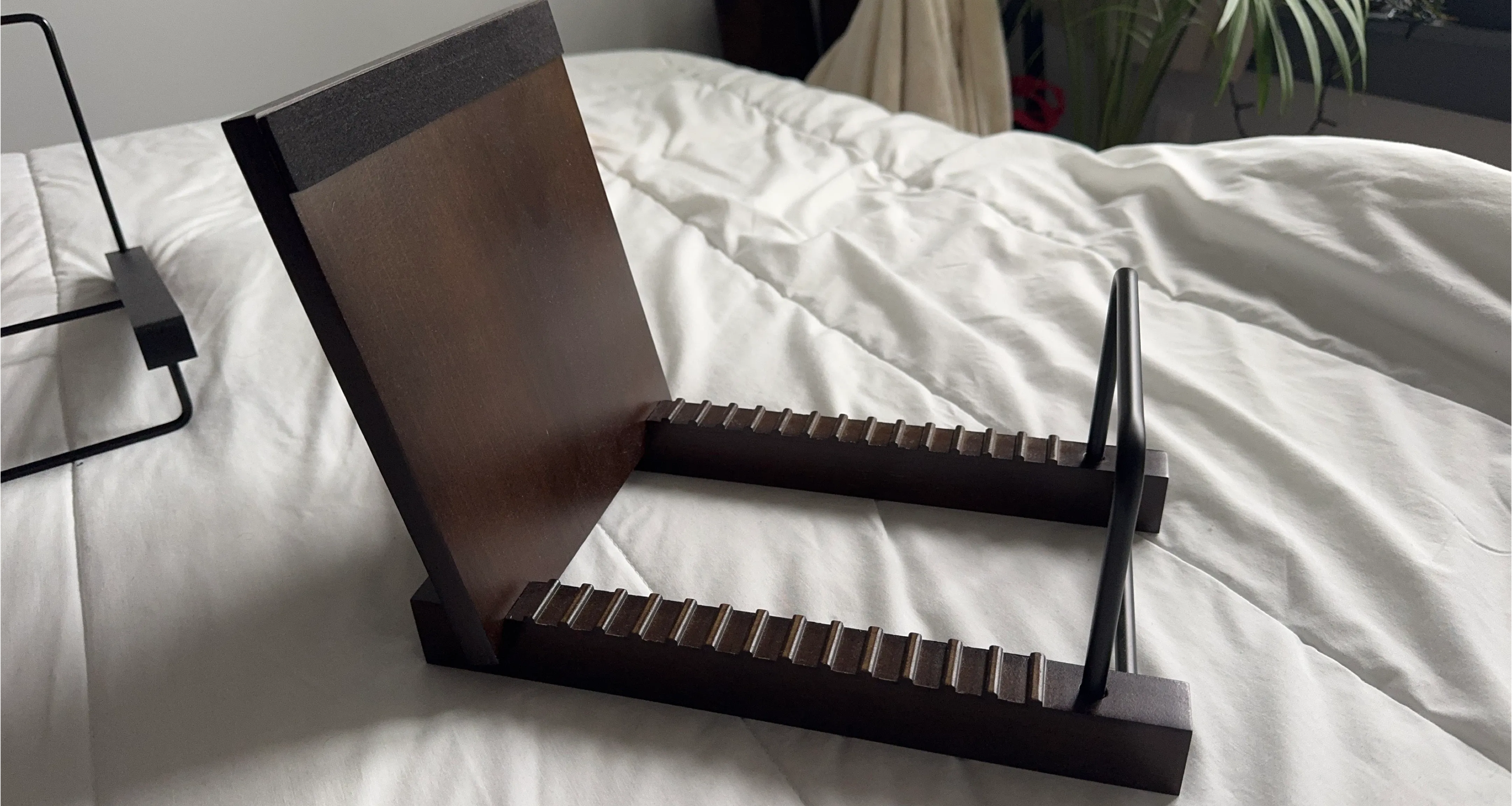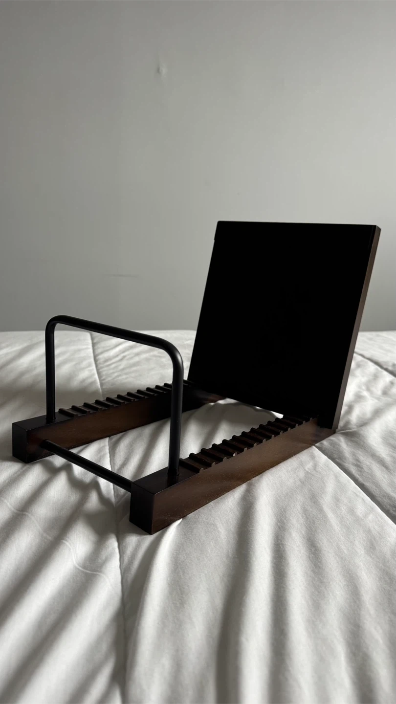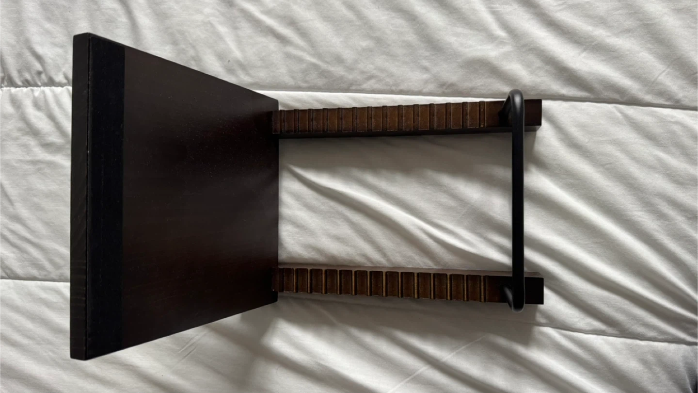 Selling a wooden 3 units vinyl record holder! It's in great shape and perfect for displaying your favorite records. It has a dark brown wood finish and a black metal support bar. Individual price