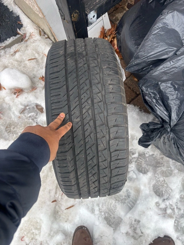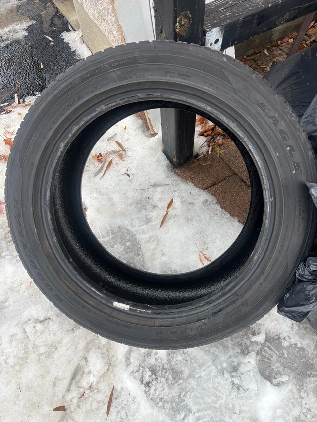 I am selling a set of four Goodyear Eagle All-Season tires, size 235/50R18, suitable for various vehicles. These tires are used and their condition reflects typical wear, but they still offer reliable performance for everyday driving.