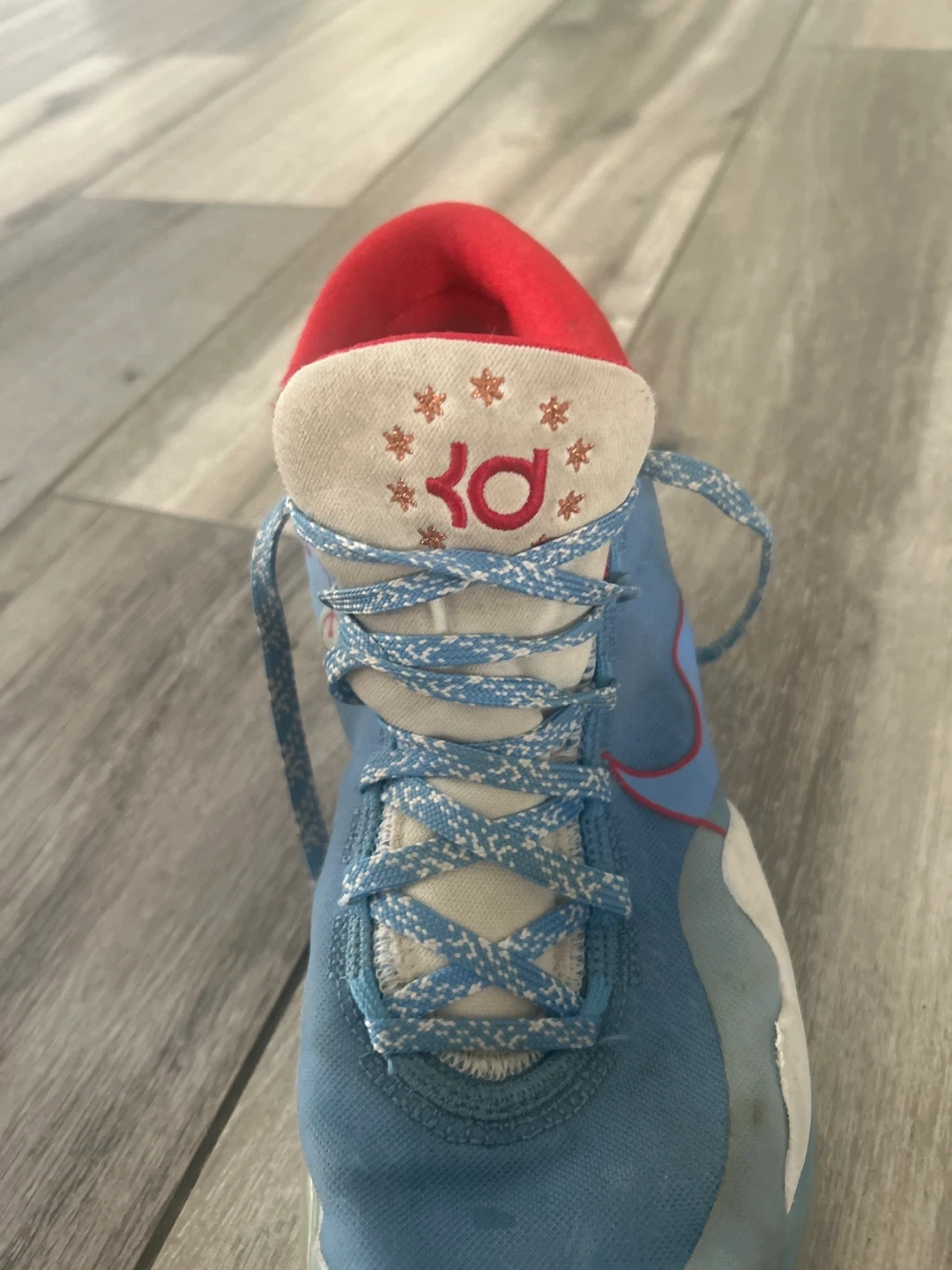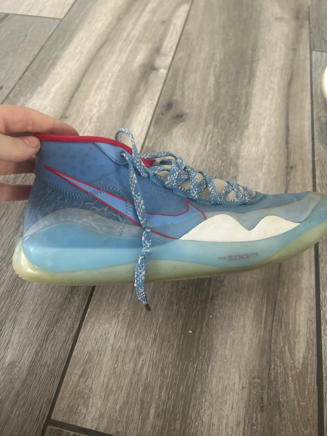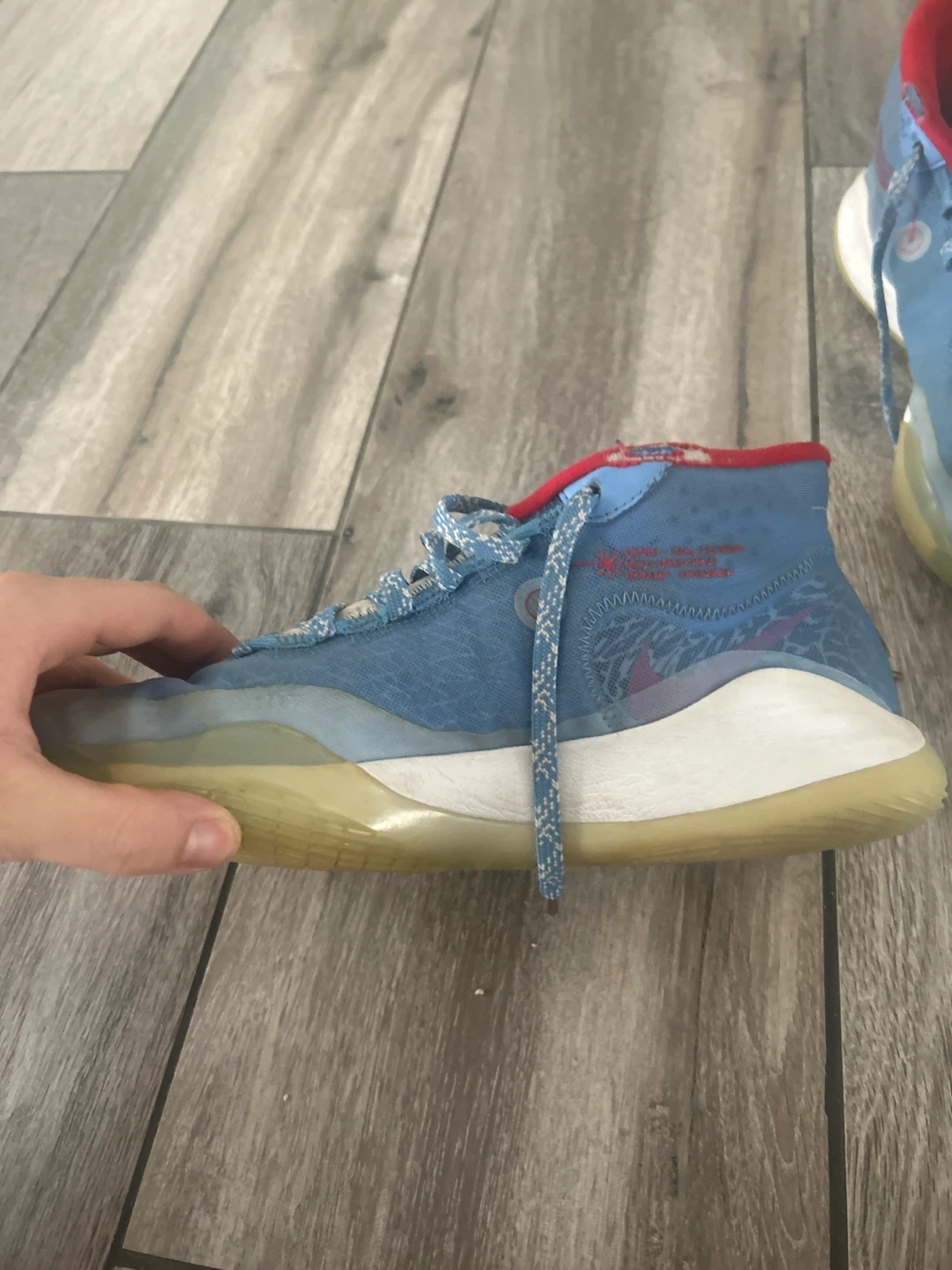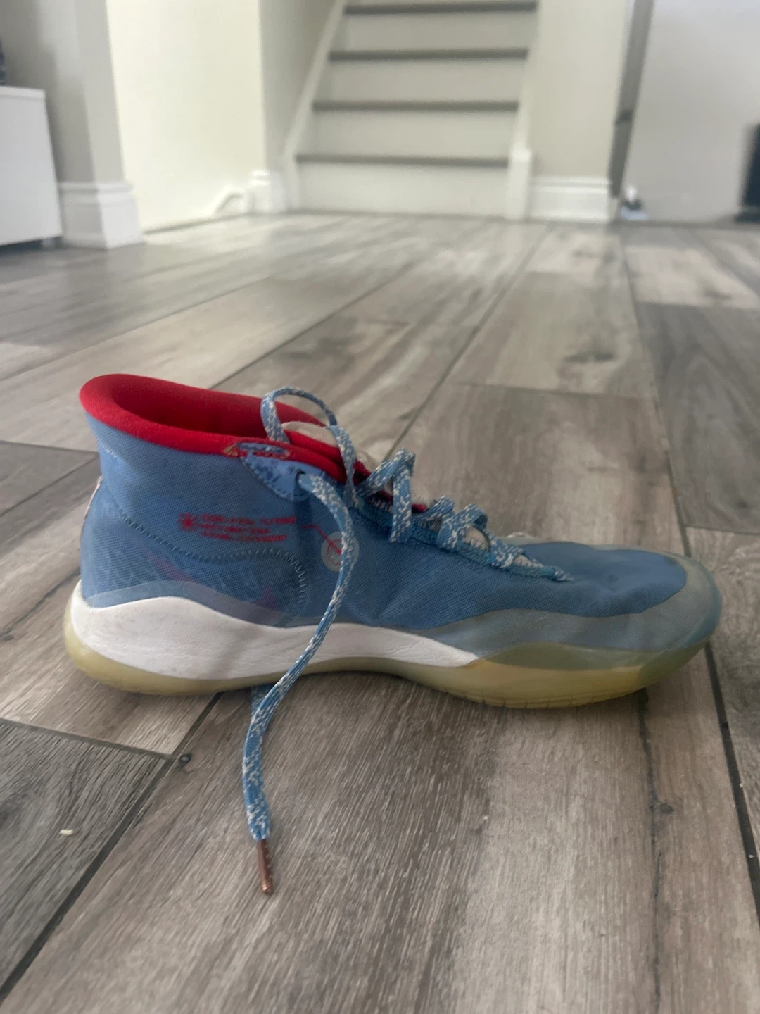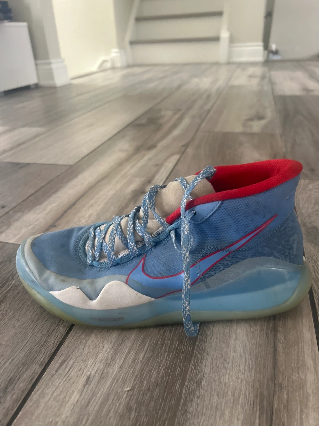 Selling a pair of Nike KD12 basketball shoes in a cool blue and red colourway! These have been worn, but still have lots of life left. Great for playing ball or just rocking a sporty look