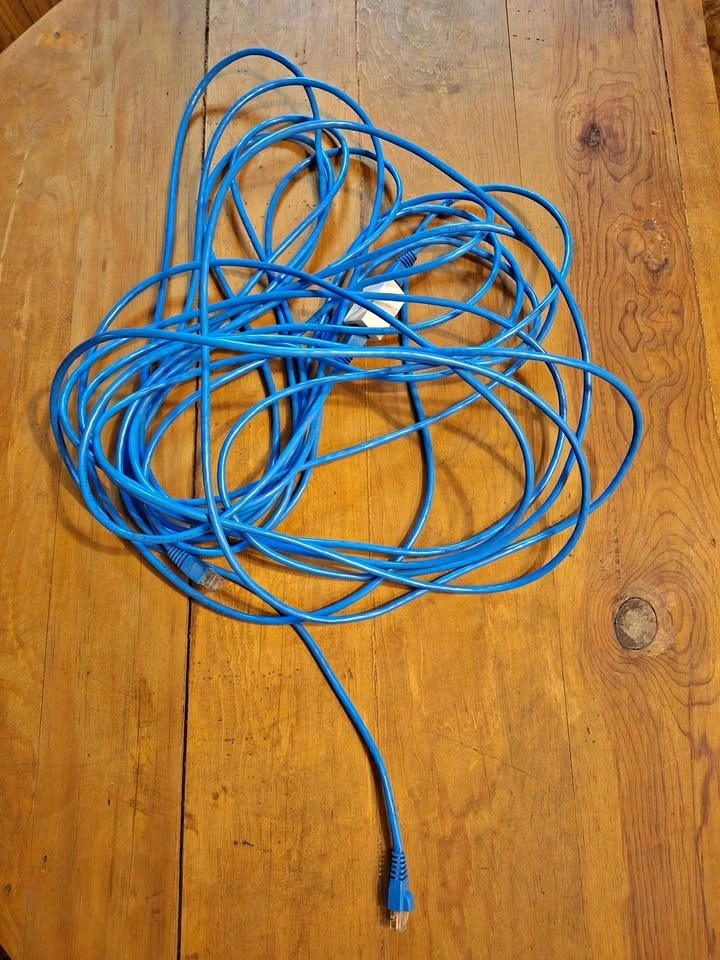 Buy & SellEthernet CableEthernet Cable$5Cat 5 Ethernet Cable, 2 x 24ft, 48 ft total with adapter included.WHERE TO MEETCheck LocationView MapSELLERCharlesBallantrae200 reviews0 chats·0 favorites·0 viewsSEND CHAT TO SELLERHi Charles! I’m interested in your listing.Hi Charles! I’m interested in your listing.Get the Karrot app to chatSign In to chat