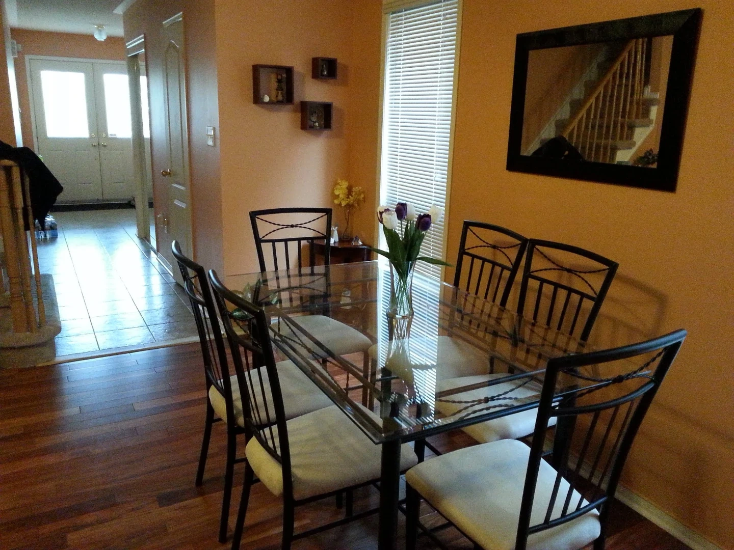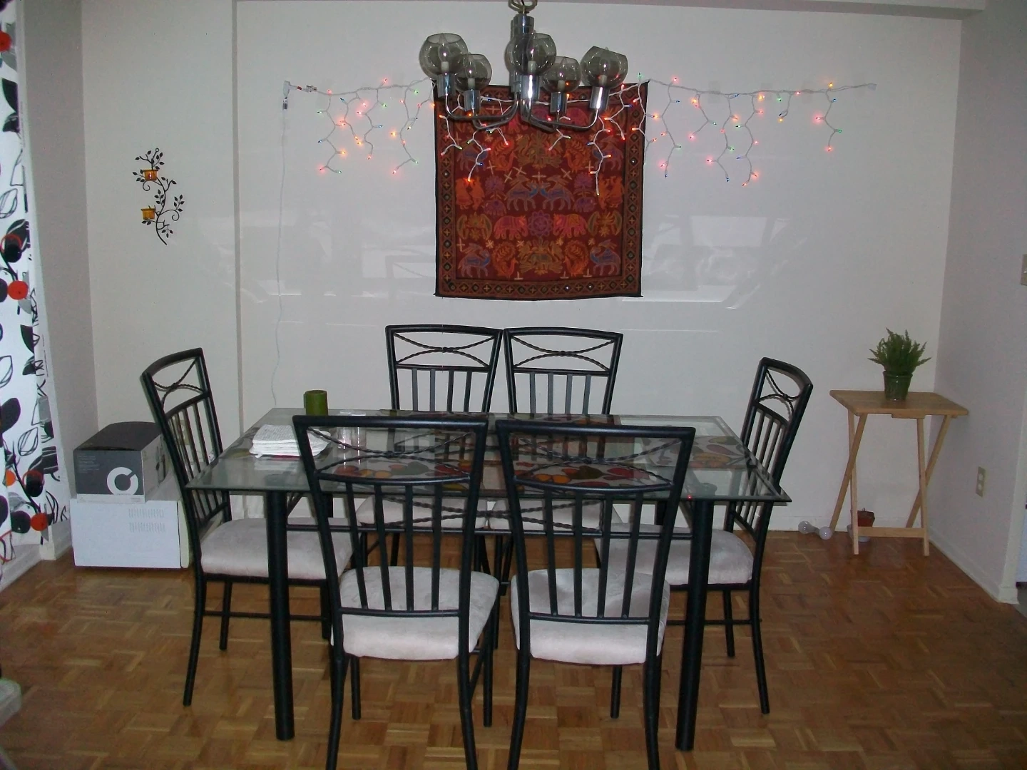 Selling a dining table with a glass top. It's in very good condition and perfect for a family or anyone who likes to entertain. The table is super easy to clean. It would be a great addition to any dining room or kitchen! Dimensions: 59" X 36".