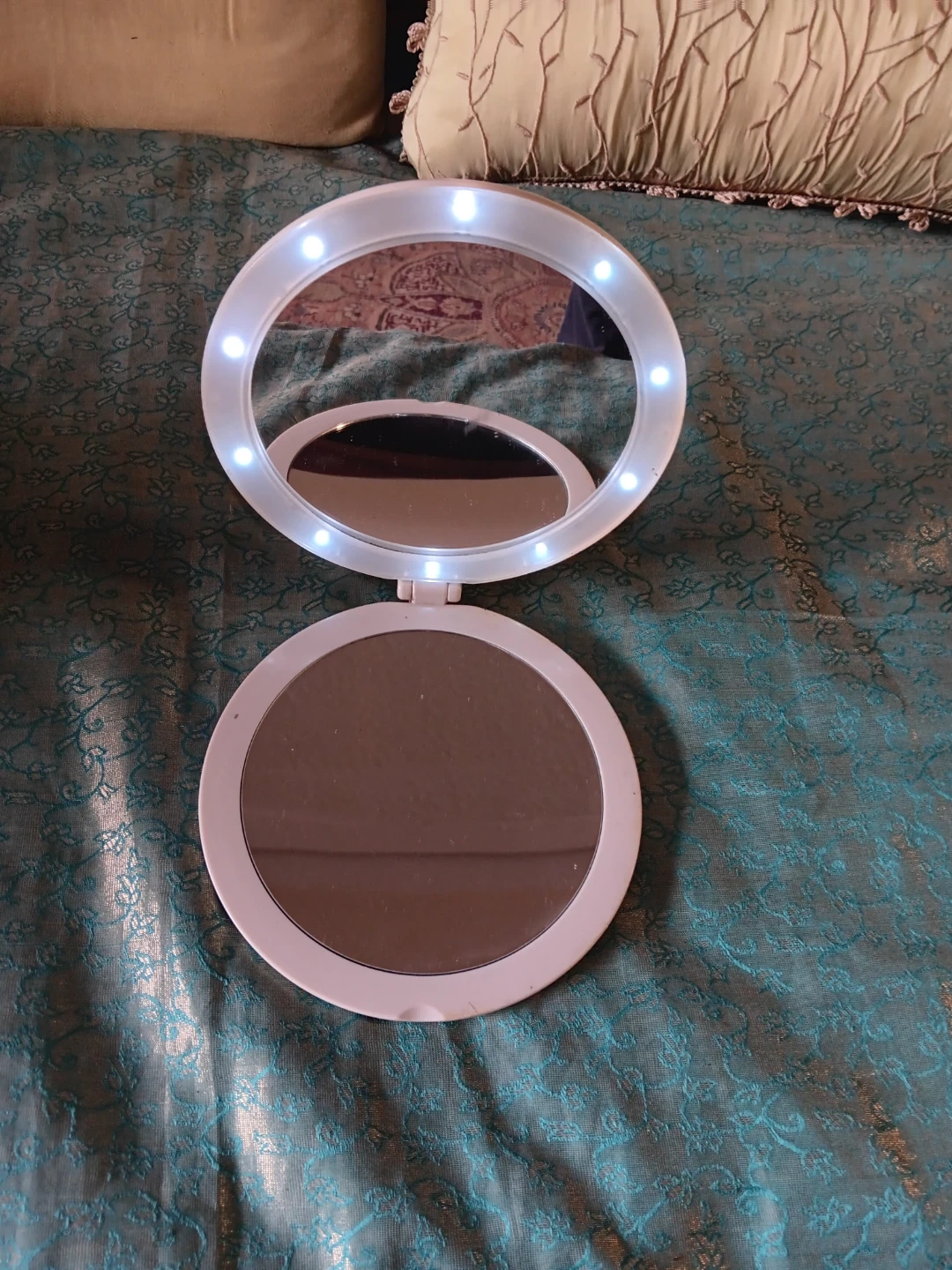 Selling a Mary Kay compact mirror with LED lights. It's in great condition and perfect for on-the-go touch-ups! The built-in LED lights make it easy to see even in low-light conditions